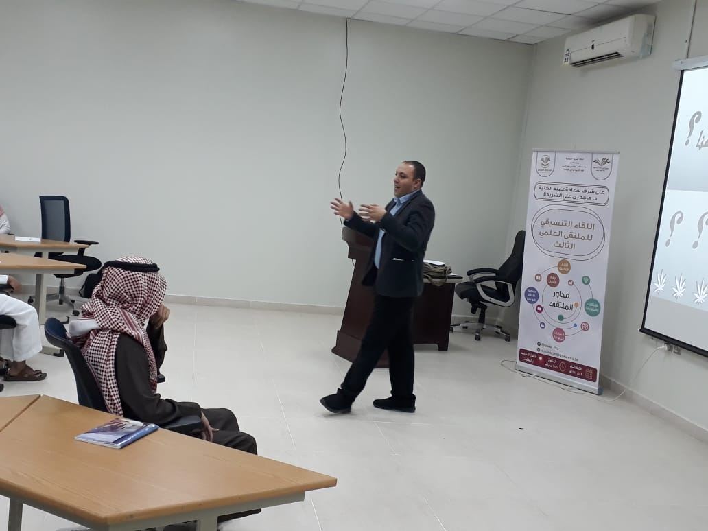 ومن جانبه أشار عزازي للدور الفعال الذي تبذله الكلية بتوجيهات عميد الكلية الدكتور ماجد الشريدة ومنسق الملتقى العلمي الثالث للمشاركة التنافسية في فعاليات الملتقى العلمي الثالث، راجيًا الله العلي القدير أن يوفق أبناءه الطلاب .