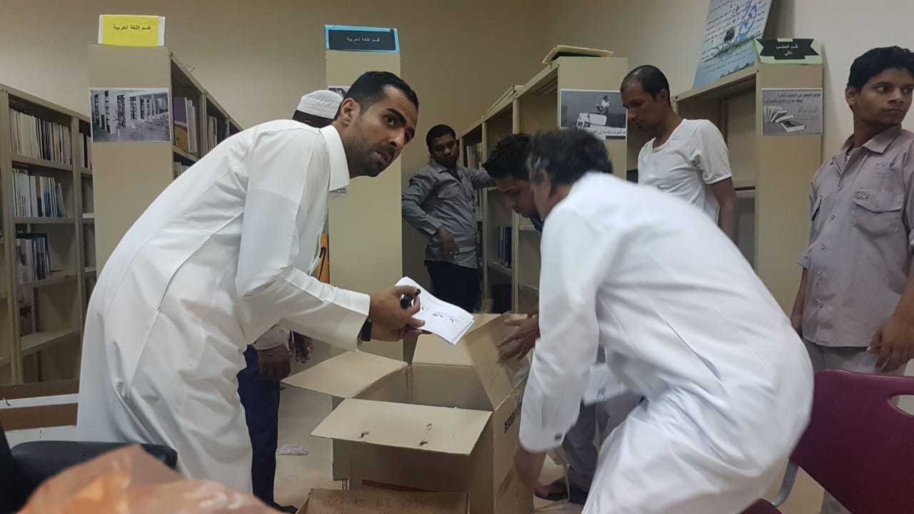 ضمن الاستعدادات والتجهيزات للإنتقال لمبنى المدينة الجامعية الجديد لكليات وادي الدواسر (شطر الطالبات) وبتوجيهات مباشرة من وكيل الجامعة للفروع المكلف د.عبدالرحمن بن ابراهيم الخضيري وباشراف عميد كلية الآداب والعلوم د. عمر بن نوح المطيري وبالتعاون مع عمادة شؤون المكتبات وبمتابعة مباشرة من الدكتور عبدالعزيز بن سعد السعيدان وفريق العمل التابع له .