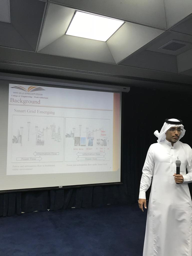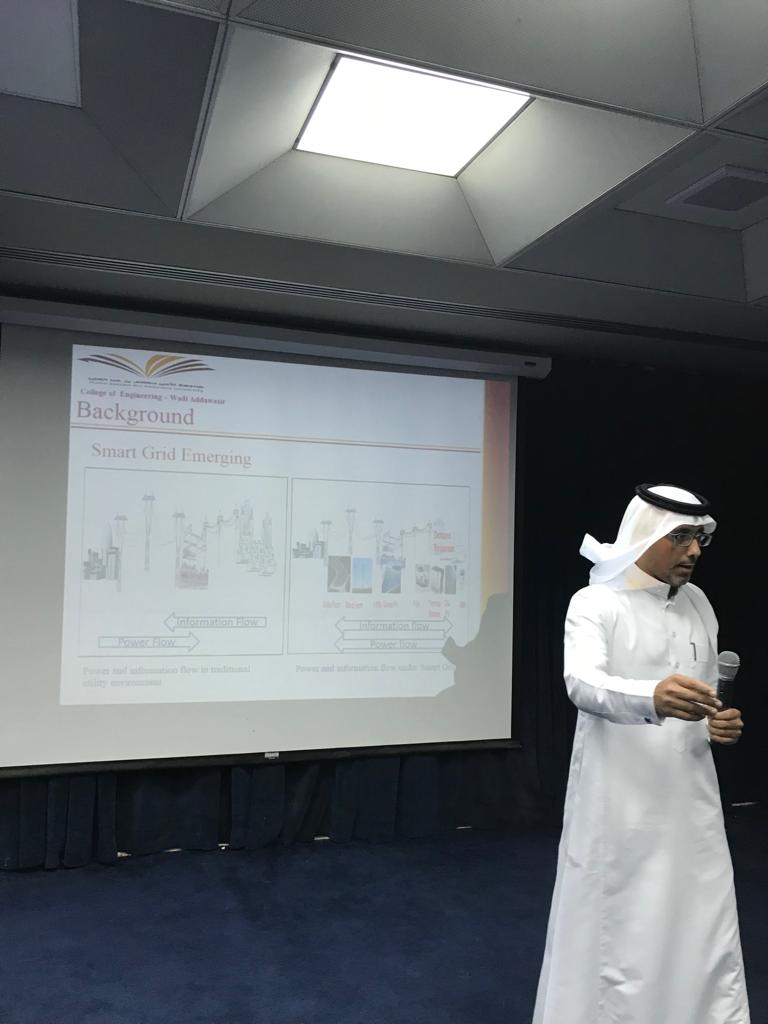 وقد بدأ الحيدر بمقدمة عامة عن الشبكات الكهربائية الذكية من حيث مكوناتها وأهم مميزاتها والفوارق الجوهرية بينها وبين الشبكات الكهربائية التقليدية.