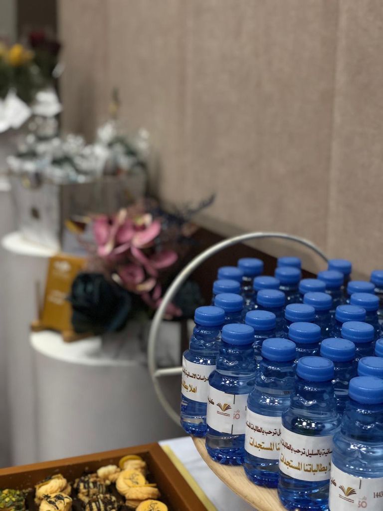 حيث تم استقبال الطالبات المستجدات بإقامة برنامج تعريفي يهدف البرنامج إلى نشر ثقافة المعرفة بأنظمة الجامعة ولوائحها وضوابطها للطالبات المستجدات، ابتداء البرنامج بالقران الكريم ثم بعد ذلك ألقت الوكيلة د. عواطف الرشيدي كلمة حثت الطالبات على العلم والتحلي بالأخلاق وضرورة التقيد بأنظمة الجامعة ثم عرفت كل جهة بالخدمات التي تقدمها، وعرفن رئيسات الإقسام بأنفسهن ووجهن كلمة للطالبات المستجدات وضحن فيها أهداف كل قسم ومخرجاته وتوجهاته في سوق العمل.