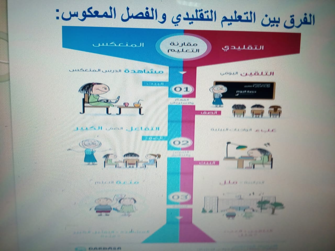 انطلاقاً من رؤية ورسالة وأهداف وحدة التطوير والتنمية المهنية في تدريب أعضاء هيئة التدريس بالكلية، وإيماناً منها بتمكين وتحديث قدرات ومهارات وأداء الأعضاء المهني ، وتحقيقاً لرسالتها وأهدافها أقامت الوحدة ضمن سلسلة دوراتها للفصل الدراسي الثاني للعام الجامعي 1439-1440 دورة تدريبية بعنوان: (إستراتيجية الفصول المعكوسة ) تقديم الدكتورة / خالدة عباس محمد عباس في يوم الأربعاء 17/5/1440هـ بقاعة الفيروز.