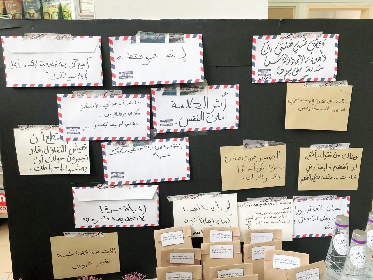 نظم نادي عون التطوعي بعمادة السنة التحضيرية – شطر الطالبات يوم الثلاثاء /3/19 1440هـ فعاليه تحت عنوان:( أثر الكلمة على النفس) ،بإشراف الأستاذة بيان الجريان وشريفة السماري. الكلمات دائماً لها أثر كبير في نفوسنا وفي نفوس الآخرين، و من هذا المنبع يجب علينا دائماً الحرص في إنتقاء كلِماتُنا الموجهه للآخرين.هذه الفعاليه نُظمت لمعرفة مدى أثر الكلمات الخارجه من أفواهينا على نفوس الآخرين وهل هذا الأثر جميل! كان للطالبات العديد من المشاركات في هذه الفعاليها أولها: إقامة ركن يتضمن توزيعات، نشرات، ملصقات. ثانياً: خطو بأيديهم رسائل عن أثر الكلمة على النفس وعبارات محبه للأخرين. واخيراً: تم إلصاق هذة الرسائل على الحائط المشارك.