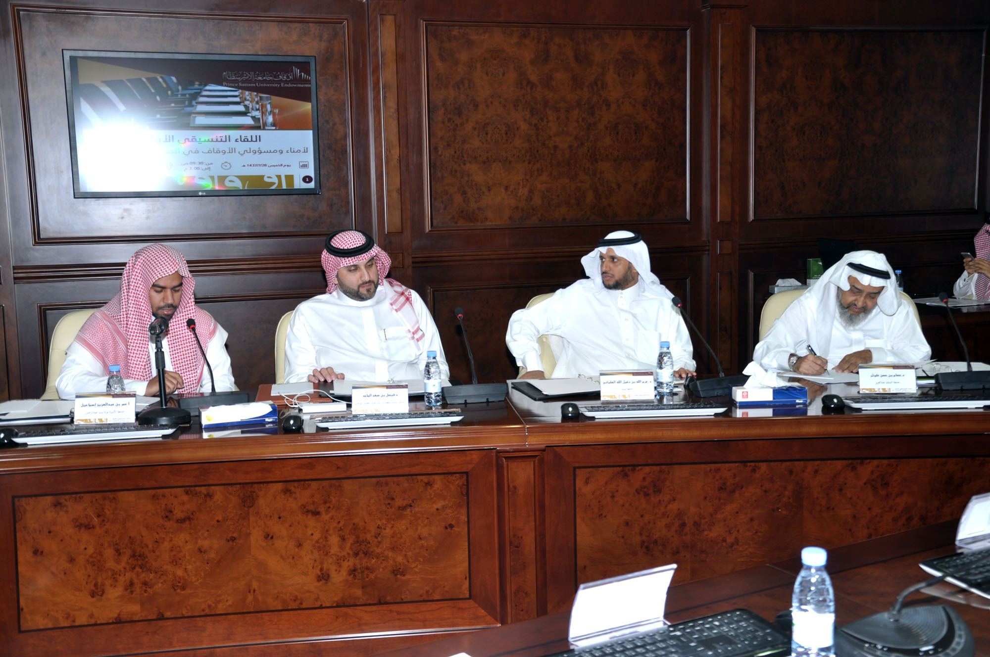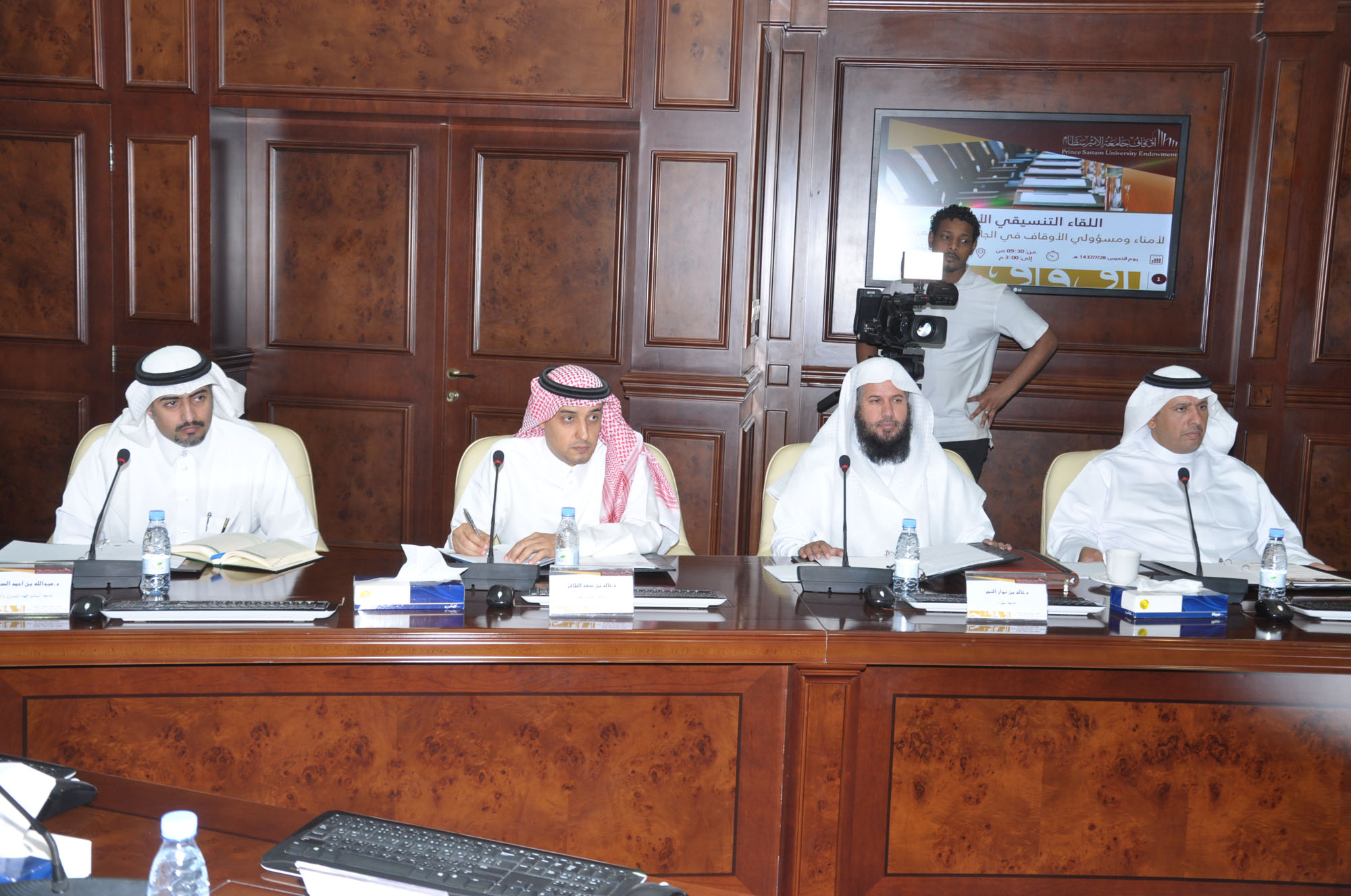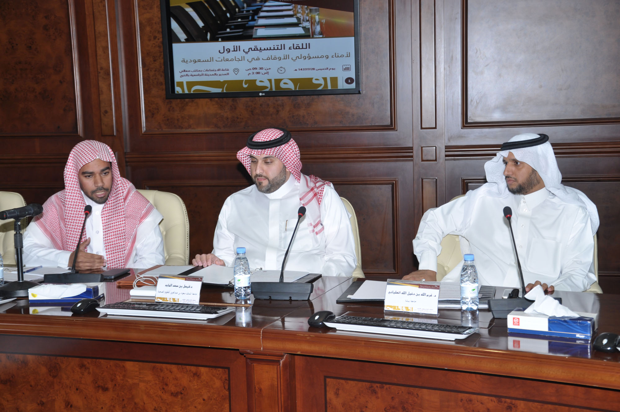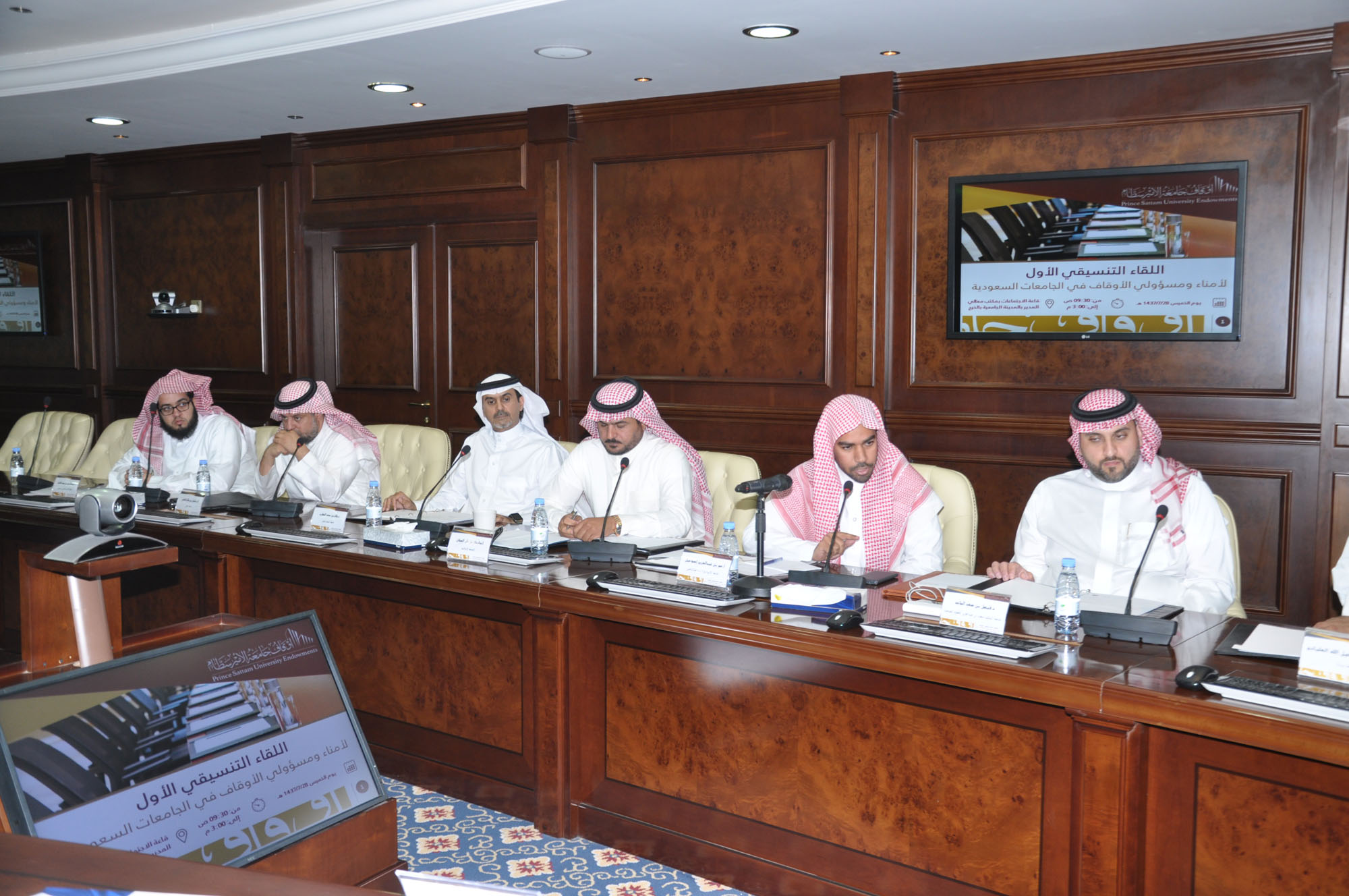 وقد افتتح أمين أوقاف جامعة الأمير سطام الدكتور عبدالرحمن بن عبدالعزيز الجريوي الاجتماع ثم تداول المجتمعون في الجلسة الأولى الحديث عن سبل ومجالات التعاون بين أوقاف الجامعات السعودية وتحديد احتياج الأوقاف وأبرز التحديات المتوقعة وكيفية استثمار الفرص المتاحة وصناعة وتبني المبادرات الوقفية، بعد ذلك عقدت ثاني جلسات اللقاء لمناقشة جدوى فكرة مبادرة تأسيس مجلس تنسيقي لأوقاف الجامعات السعودية وتحديد حدود عمله وأبرز الفرص والتحديات ورسم توجهاته وسياساته العامة وإطاره التنظيمي، ثم اختتمت جلسات اللقاء التنسيقي لأمناء ومسؤولي أوقاف الجامعات بجلسة ختامية نوقشت واعتُمِدت فيها النتائج والتوصيات، والتي من أبرزها الموافقة على مبادرة تأسيس المجلس التنسيقي لمسؤولي أوقاف الجامعات السعودية، وقد بادرت أمانة أوقاف جامعة الأمير سطام بإعلان استعدادها لوضع وصياغة قواعد منظِّمةٍ لعمل المجلس، وقد رشّح المجتمعون أمانة أوقاف جامعة الأمير سطام لاستضافة أمانة المجلس لمدة ثلاث سنوات، تليها أوقاف جامعة الملك عبدالعزيز ثم أوقاف جامعة الملك سعود لمُددٍ مماثلة، على أن تكون رئاسة المجلس لمدة عام مناوبة بين الجامعات؛ وسترفع نتائج وتوصيات اللقاء لمعالي وزير التعليم للتوجيه وأخذ الموافقة حيالها. بعد ذلك استقبل معالي مدير جامعة الأمير سطام د.عبدالرحمن العاصمي بحضور وكيل الجامعة د.عبدالله الجمعة المشاركين في اللقاء، وقد رحب بهم وقال إن الجامعة تسعد بحضورهم، كما تحدث عن أهمية الأوقاف في دعم مسيرة الجامعات أعقبها كلمة لأمين أوقاف جامعة الأمير سطام د.عبدالرحمن الجريوي شكر فيها معالي المدير على دعمه وتشجيعه لإقامة اللقاء، واستعرض ما ناقشه المجتمعون، وتلا التوصيات التي توصلوا لها. ثم شارك د.عصام كوثر مدير الوقف العلمي بجامعة الملك عبدالعزيز و د. خالد المطرب من جامعة الملك فيصل بكلمتين شكرا فيها أمانة أوقاف جامعة الأمير سطام على حسن تنظميها وإعدادها للقاء. بعد ذلك كرم معالي مدير الجامعة المشاركين وقدم لهم هديةً أعدتها أمانة الأوقاف تشتمل على كتيبات متعلقة بالأوقاف في الإسلام وهدية رمزية، كما كرم منسوبي الأمانة المنظمين للقاء. ثم التقطت الصور التذكارية. بعد ذلك تناول المشاركون طعام الغداء، ثم غادروا مودَّعِينَ بمثل ما استُقْبِلوا به من حفاوةٍ وترحيب