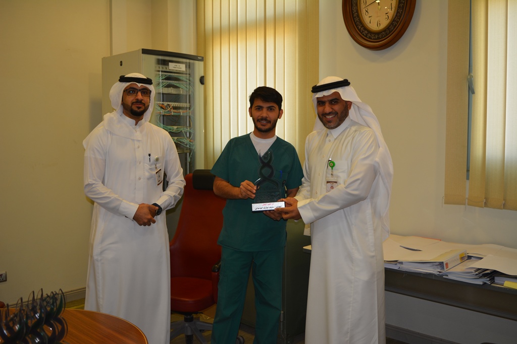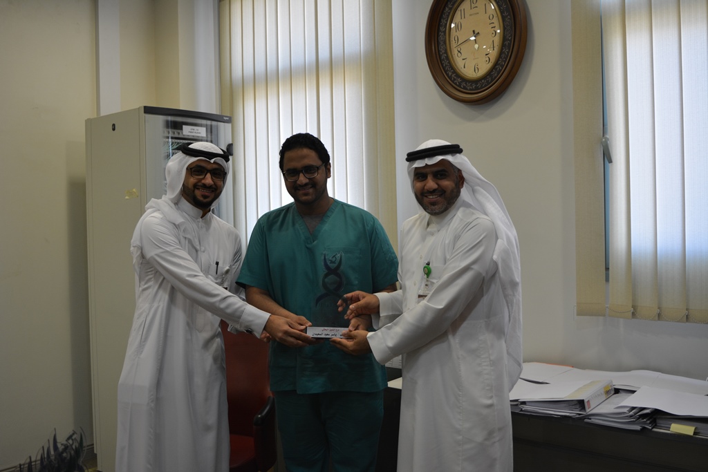 حيث تحصل الطلاب المشاركين على دروع التميز البحثي التكريمية نظير عمل ثلاث دراسات منفصلة تتعلق بعلاج ضغط الدم في المملكة العربية السعودية وجاءت أسماؤهم على النحو التالي ( بدر جلوي المخلفي ,عبدالله قاسم العنزي ,عمر ابراهيم آل مهنا ,ياسر سعود السعيدان, سليمان عبدالعزيز الفائز, فيصل محمد العبلان , رائد خليف العنزي , عبدالله ربيع الطشه , محمد فهد بن دغار , نايف مبارك الودعاني , فيصل علي الزهراني ,سلمان ماجد العنزي)