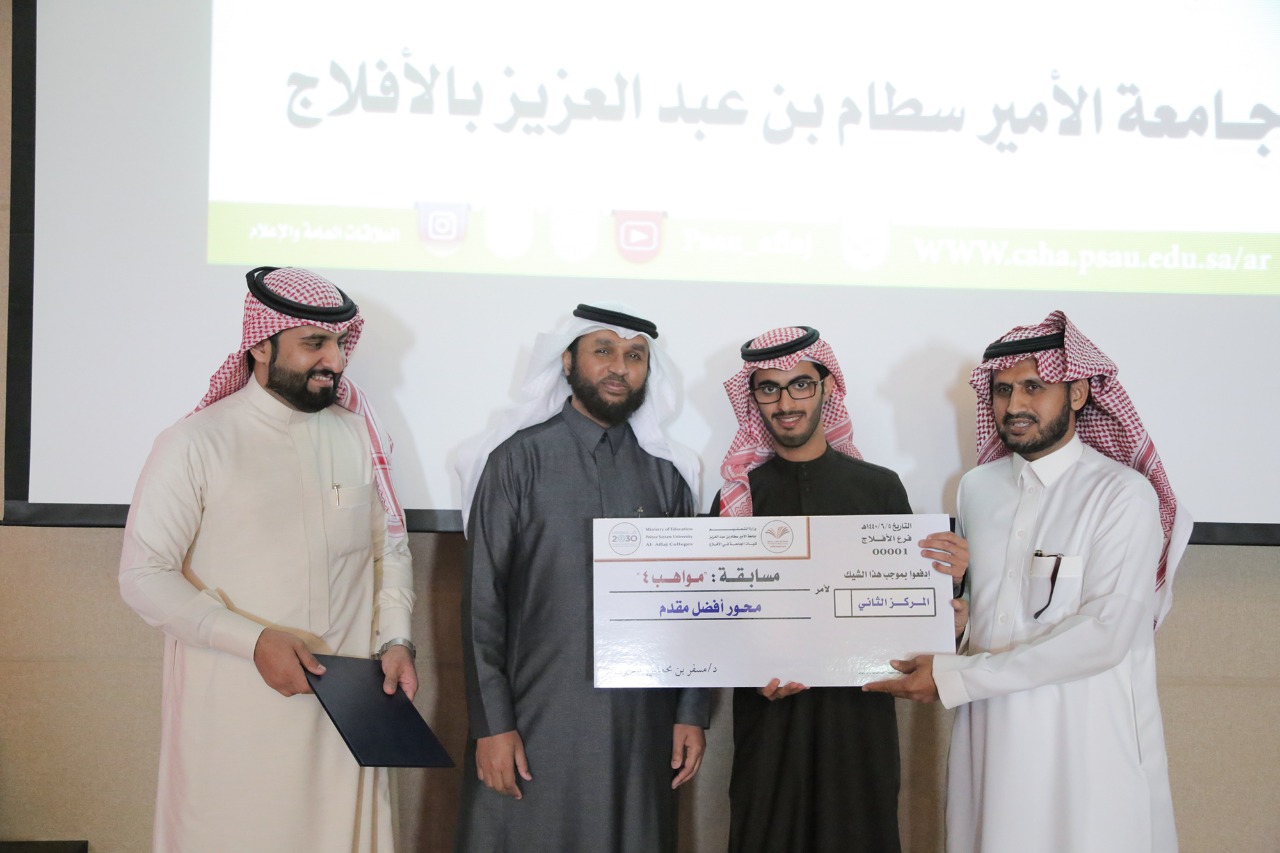اختتمت كليات جامعة الأمير سطام بن عبدالعزيز بالأفلاج يوم الأحد المرحلة الثانية لمسابقة مواهب 4 والفعاليات المصاحبة له واحتفت بالفائزين في المسابقة.