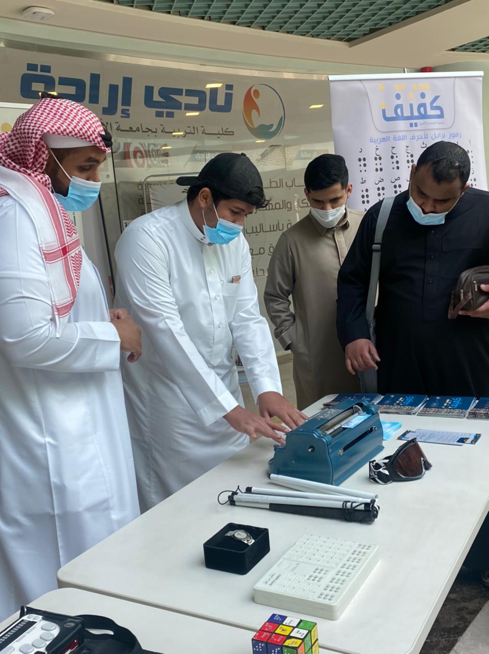 أقامت وحدة ذوي الإعاقة بالتعاون مع جمعية كفيف فعالية العصاء البيضاء لطلاب ومنسوبي الجامعة . وحظيت الفعالية بتفاعل كبير منالطلاب حيث اطلعوا على الأجهزة والادوات التي يستخدمها المكفوفين. بالإضافة إلى تجربة العصاء والتعرف على التحديات التي تواجهالأفراد المكفوفين ، وتأتي هذه الفعالية ضمن خطط وبرامج وحدة ذوي الإعاقة في عمادة شؤون الطلاب لعام ١٤٤٣هـ.