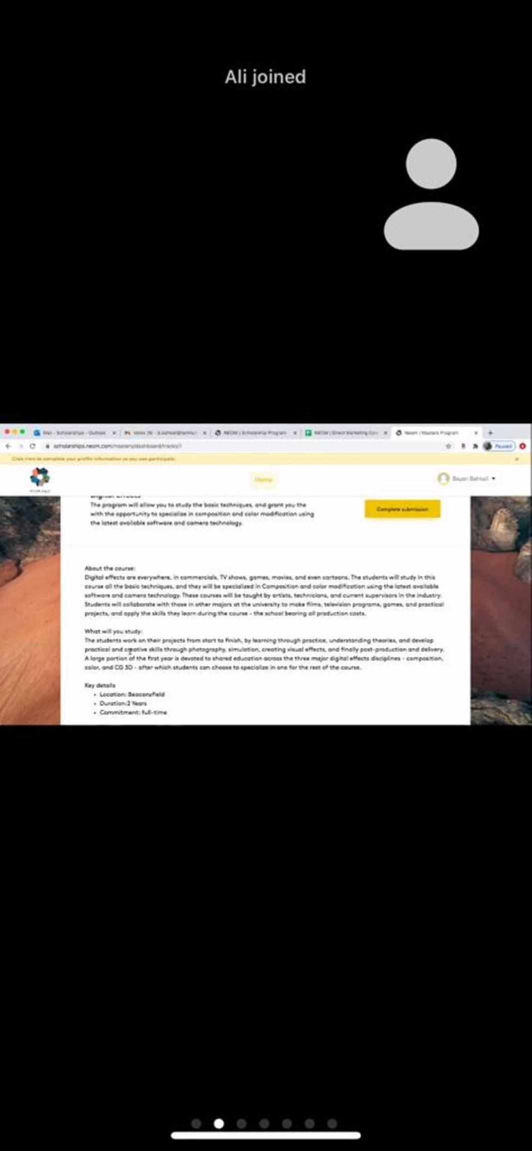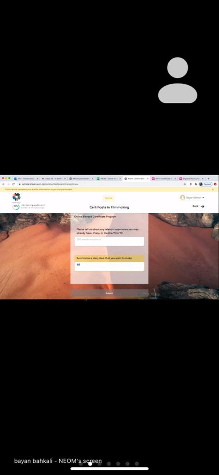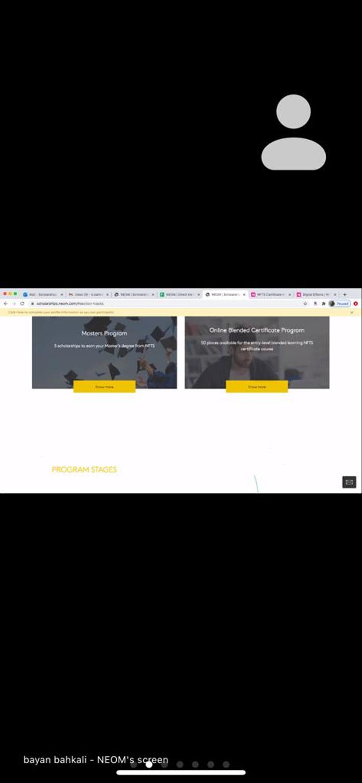 نظمت عمادة شؤون الطلاب مساء أمس الأحد وبالتعاون مع "نيوم" ندوة افتراضية للتعريف بطريقة التسجيل في المنح الدراسية بجامعة National Film & Television School " NFTS" قدمها ممثل البرامج الدراسية في نيوم الأستاذة بيان بهكلي .
