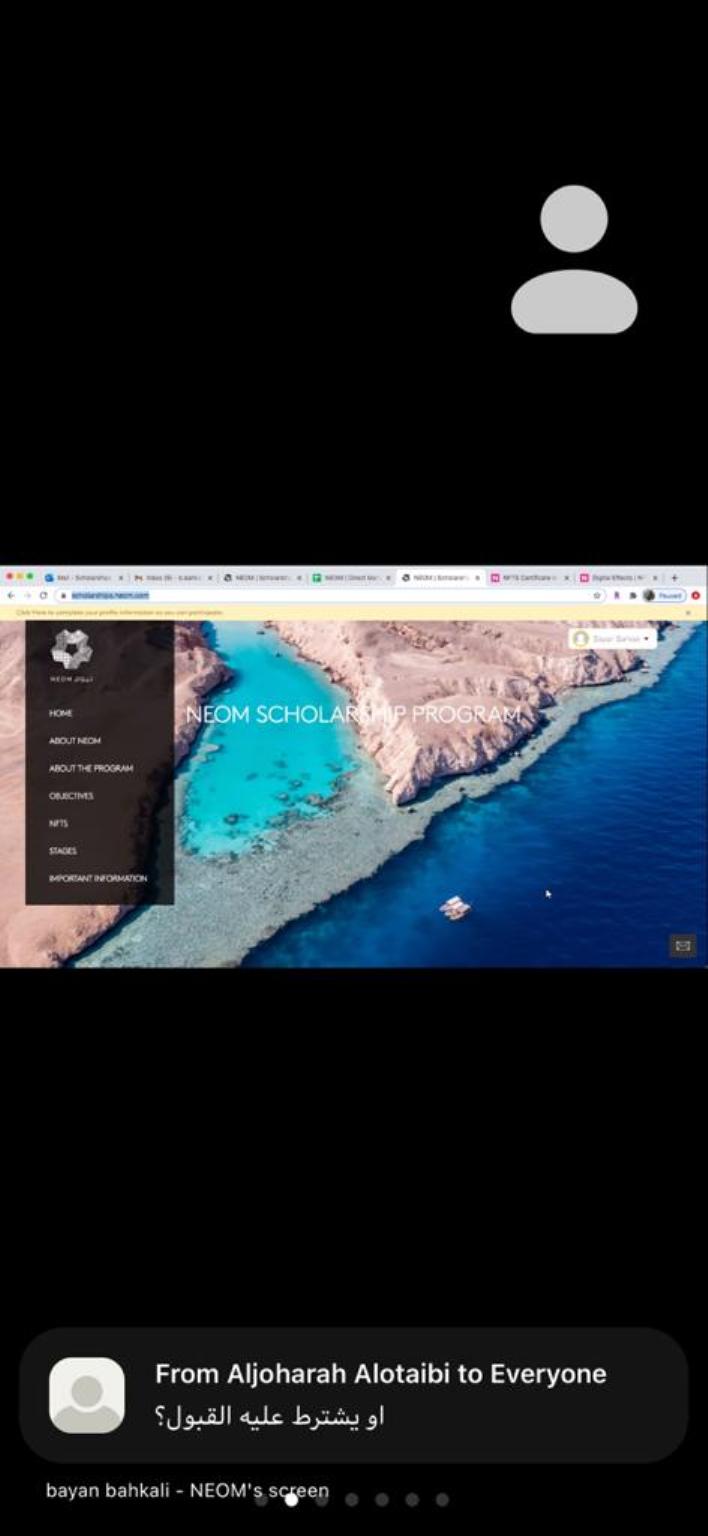عقب ذلك شرعت الأستاذة بيان في التعريف ببرامج المنح الدراسية التي تقدمها نيوم وأنوعها وآلية تنفيذها وطريقة التسجيل والالتحاق بها .