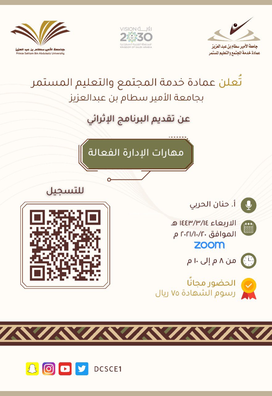 عن بدأ التسجيل في البرنامج الإثرائي ( مهارات الإدارة الفعالة )