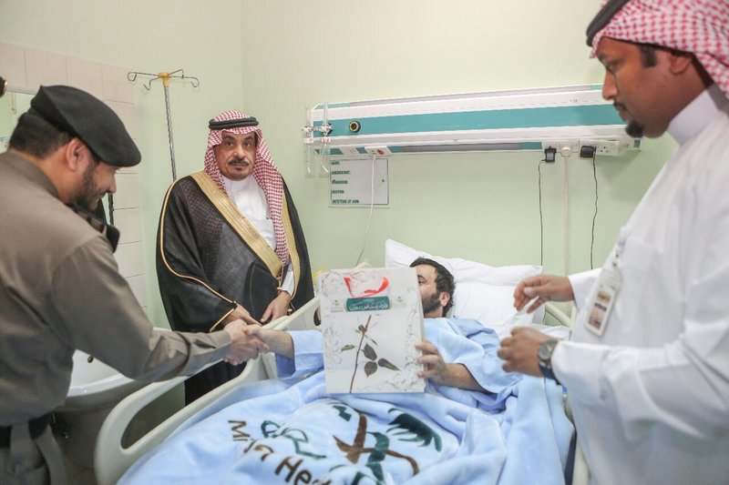 وقام المحافظ بمعايدة المرضى بمختلف الأقسام ، وقدّم لهم الهدايا والورد سائلاً الله تعالى أن يمُنَّ عليهم بالصحة والسلامة ، مشيدًا بجهود منسوبي المستشفى المبذولة لخدمة المرضى ، ولاسيما المناوبين منهم خلال إجازةالعيد .