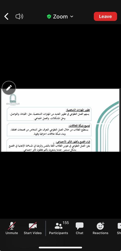 اختتمت إدارة المسؤولية المجتمعية مساء أمس الأثنين ندوة افتراضية عبر منصةzoom بعنوان "العمل التطوعي حياة " والتي قدمها كلاً من أ.د / حمد بن عبدالله القميزي ، ود. نورة بنت ناصر العويد ، ود. نورة بنت سعد الفوزان.