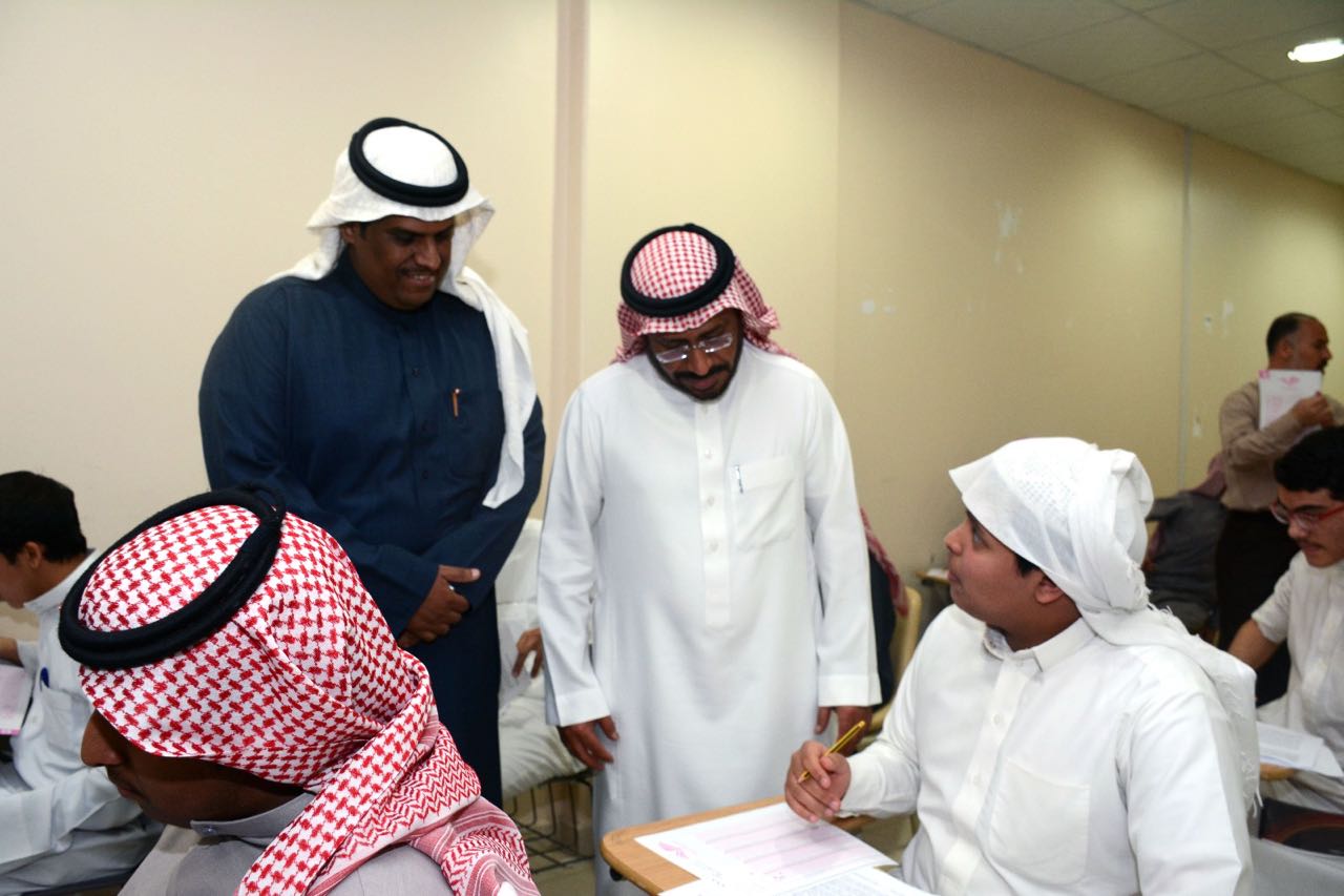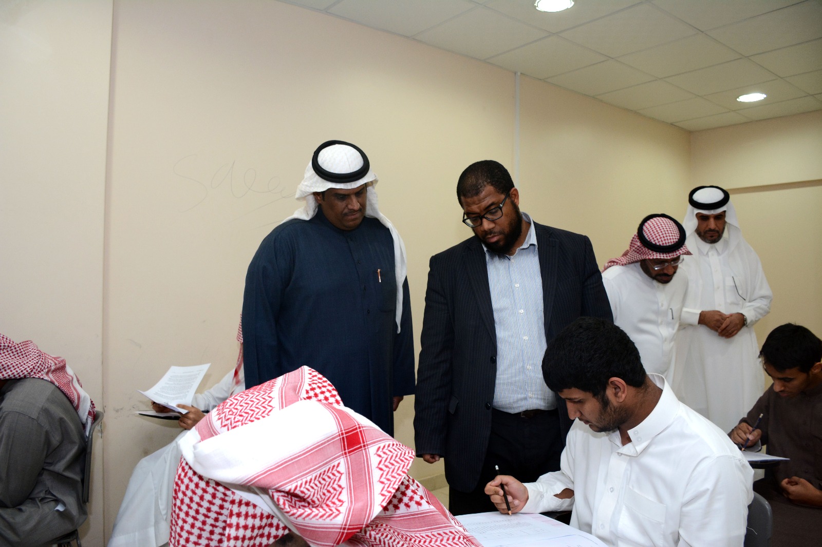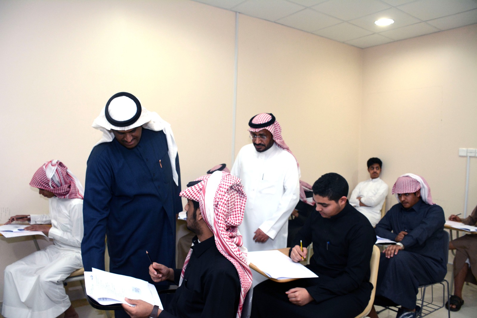 عقب ذلك توجه الطلاب المشاركين في البرنامج والذين يزيد عددهم عن مائة طالب إلى القاعات الدراسية التي تم تهيئتها لعقد اختبار تحديد مستوى للطلاب المشاركين. وقد قام عميد عمادة السنة التحضيرية ومساعد مدير التعليم بجولة داخل القاعات للاطلاع على آلية سير اختبار تحديد المستوى.
