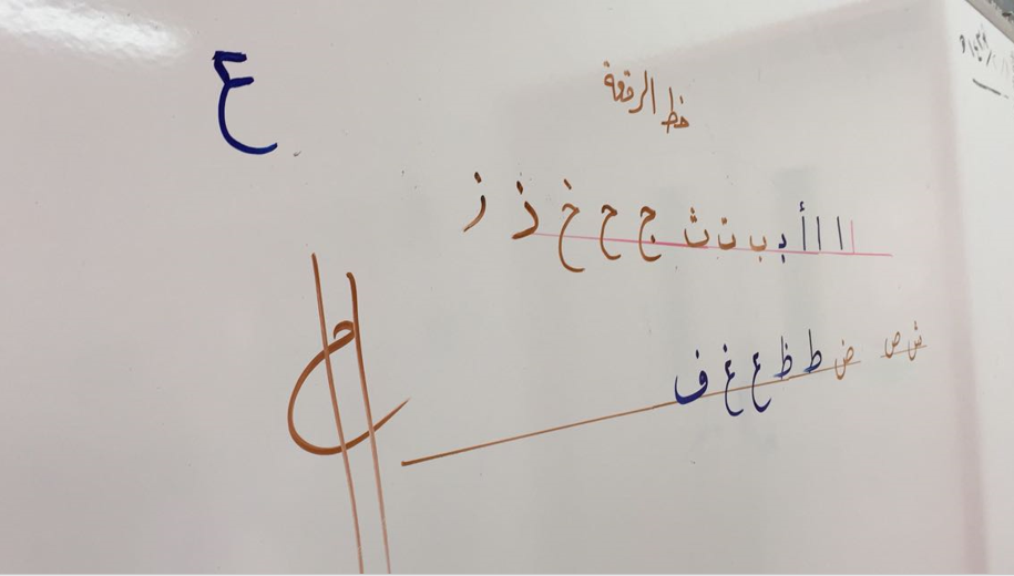نظم قسم اللغة العربية بالتعاون مع وحدة خدمة المجتمع بالجودة بكلية التربية بالدلم ، ورشة تدريبية عن خطي الرقعة والنسخ بمناسبة اليوم العالمي للغة العربية لطالبات الصف السادس الابتدائي ، من إعداد وتقديم د. آمنة حسين الرماضنة الأستاذ المساعد بقسم اللغة العربية تخصص أدب أطفال، صباح يوم الخميس الموافق 16/3/1438هـ ، بالابتدائية الحادية عشرة بالدلم .