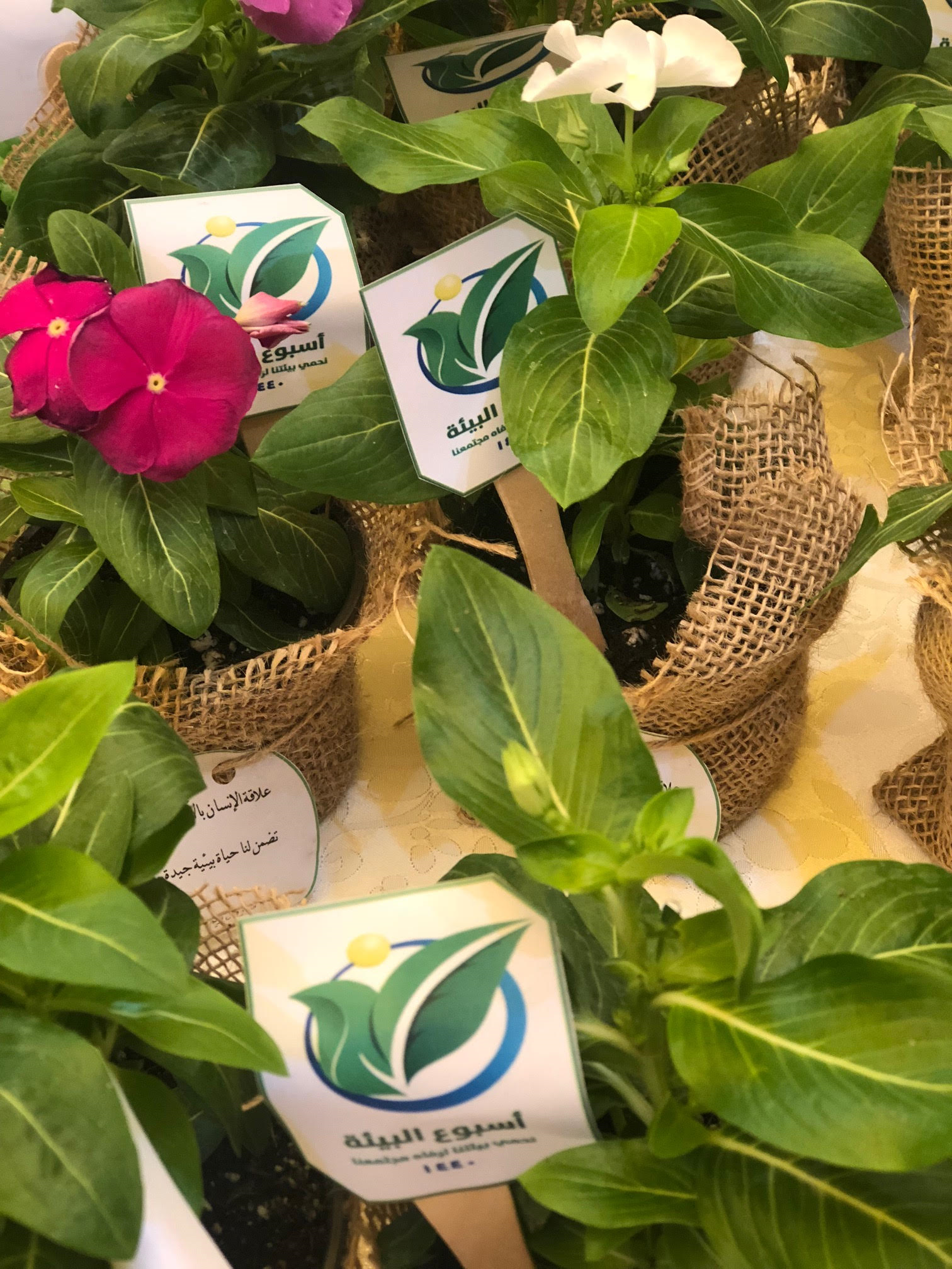 كما تم توزيع عدد كبير من الشتلات والورود على الطالبات ومنسوبات الكلية لعزيز ثقافة الزراعة والاهتمام بالبيئة لديهم.