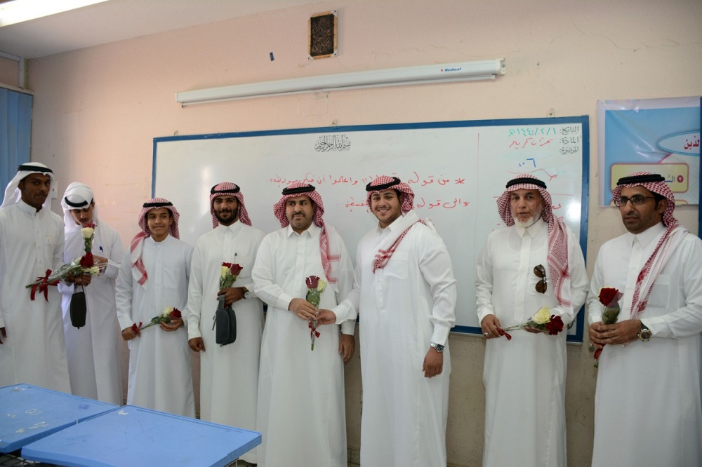 تكريما لدور المعلم في المجتمع واستشعاراً لعظم المسؤولية التي تقع على كاهله . زار وفد من طلاب عمادة السنة التحضيرية يرافقهم مشرف الأنشطة الطلابية بالعمادة الأستاذ: فهد بن حسين والأستاذ: محمد بن شايع المطرفي ، اليوم الأربعاء: 1/2/1440هـ مدرسة متوسطة الأمير فيصل بن فهد بالخرج ، وكان باستقبالهم مدير المدرسة الأستاذ صالح الحبابي ، عقبها جولة على الغرف الفصلية ،والإلتقاء بالمعلمين وتقديم التهاني لهم مصحوبا بالهدايا الرمزية .