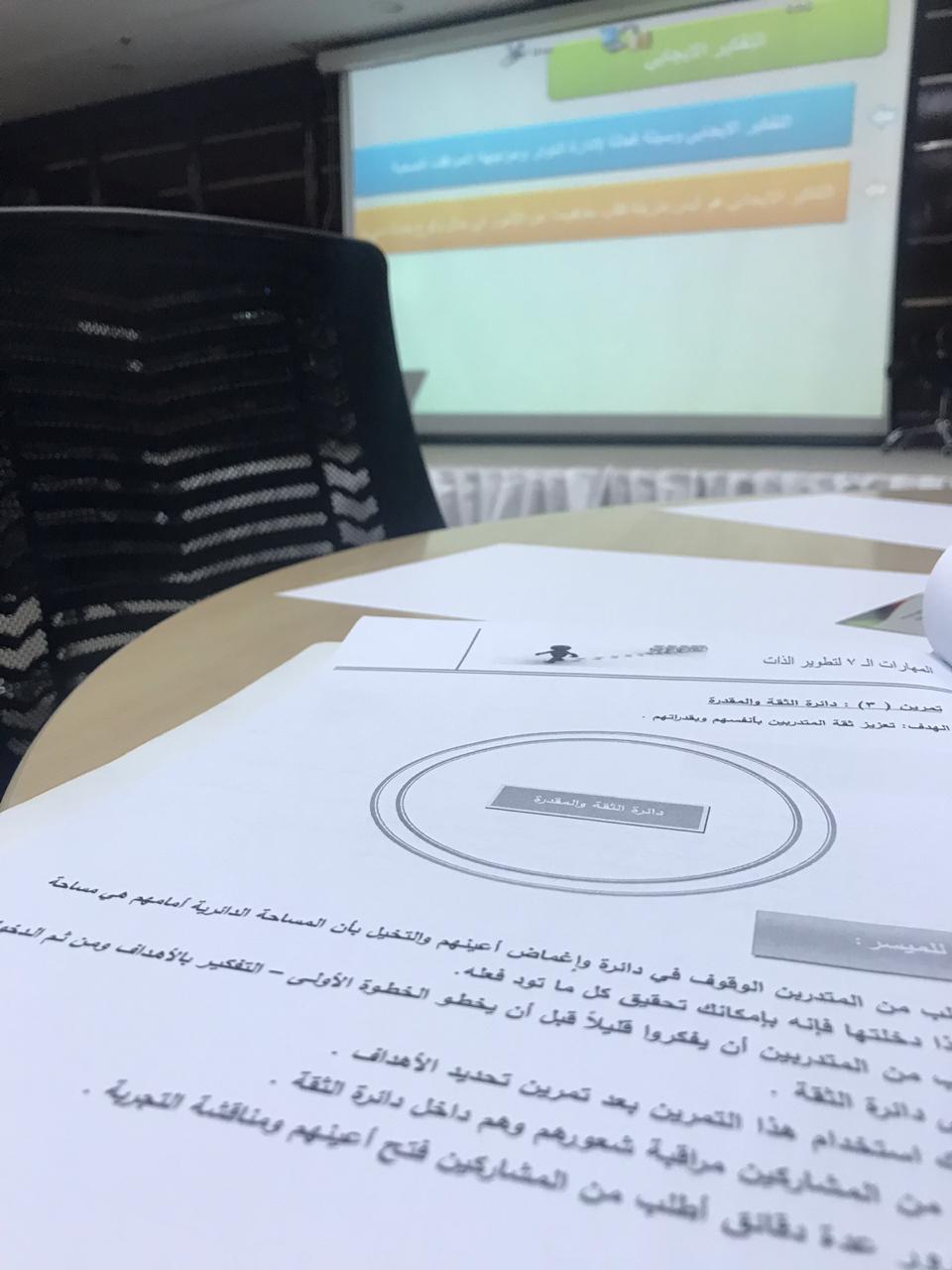 تم خلالها مناقشة التمارين التطبيقية الفردية والجماعية لتحقيق مهارات تحديد الأهداف وزيادة الثقة بالنفس .