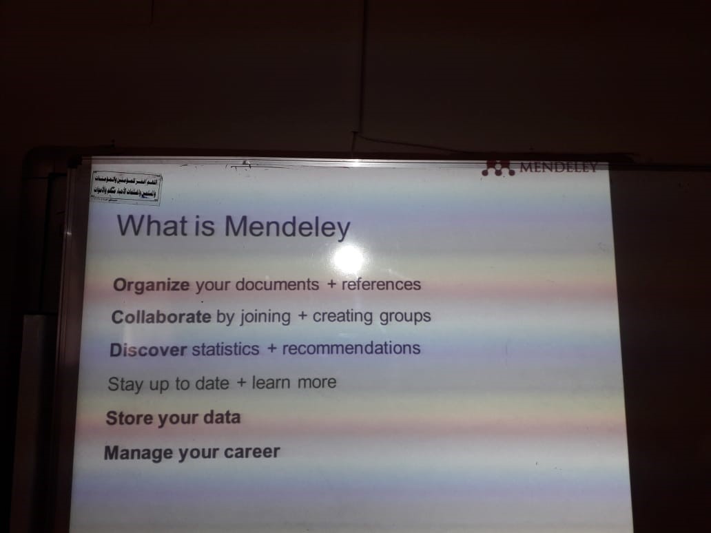 - تعريف الطالبات ببرنامج إدارة المراجع إلكترونياً Mendeley Software و أهميته و كيفية الاستفادة منه في توثيق المراجع التي استخدمت للتعرف على الدراسات السابقة ذات العلاقة بالمشروع.