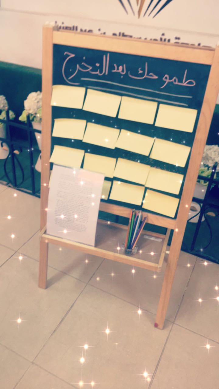 نظم قسم الدراسات الإسلامية بكلية العلوم والدراسات الإنسانية بحوطة بني تميم بالتعاون مع وحدة العمل الطلابي ركن بعنوان (طموحك بعد التخرج) يوم الأربعاء 12 / 6/ 1439 هـ وكان الهدف من الركن إضافة أجواء مليئة بالطموح والنظرة المتفائلة للغد. وحضر الركن عدد كبير من الخريجات وتفاعلن و سجلن بعض الطموحات الرائدة في مجتمعنا السعودي التي تتطلع إليها المرأة، كما تم وضع باركود تؤشر علية الطالبة فتظهر لها نصيحة ما بعد التخرج. وقد عبرت الطالبات عن مدى تأثرهن وسعادتهن بهذا الركن الذي اتاح لهن التعبير عن طموحاتهن وأحلامهن المستقبلية.