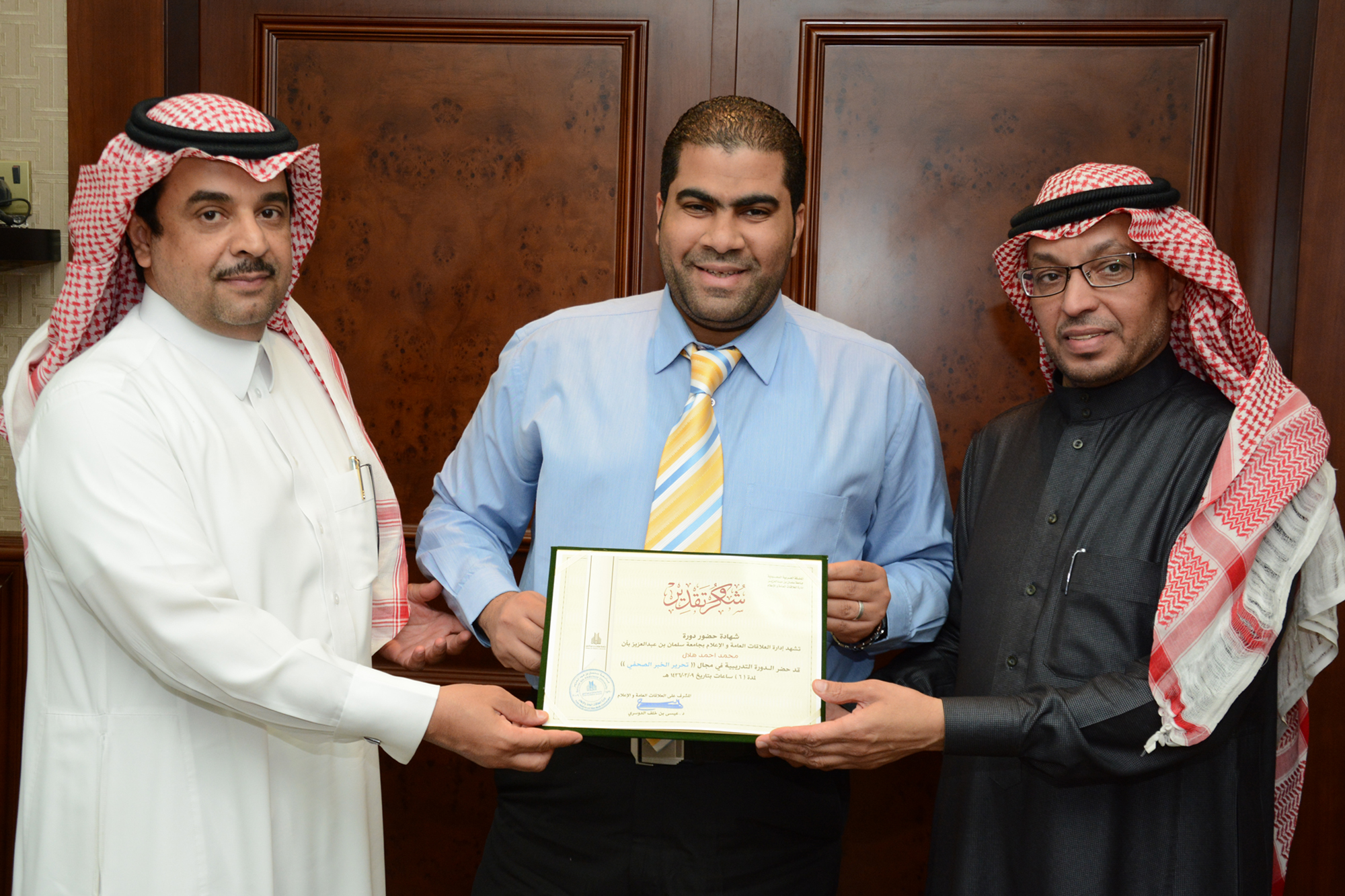 برعاية كرسي الجزيرة للإعلام والتنمية أقامت إدارة العلاقات العامة والإعلام بجامعة سلمان بن عبدالعزيز دورةً تدريبيةً في تحرير الخبر الصحفي للمنسقين الإعلاميين والإعلاميات في الجامعة قدمها الأستاذ عبدالله بن عمر العميرة مسؤول التحرير في صحيفة الرياض وتناول العميرة في محاور الدورة التعريف بالأسس والمبادئ التي يقوم عليها العمل الصحفي وصناعة الخبر الصحفي وقواعد مكوناته وتحريره وأساسيات التحرير الصحفي وأشكال تحرير المواد الخبرية والتقارير الصحفية والفروق فيما بينها وتطبيقات قواعد كتابة الخبر والتقارير وفق الأبنية التقليدية والمطورة والكتابة الخبرية الصحفية الحديثة. وهذه الدورة تستهدف تطوير المهارات الإعلامية للمنسقين الإعلاميين والإعلاميات وتزويدهم بالقدر الضروري من المعرفة في هذا المجال كما أنها تأتي ضمن سلسلة من البرامج والدورات التدريبية التي تنفذها العلاقات العامة والإعلام للرقي بالأداء الإعلامي بالجامعة .