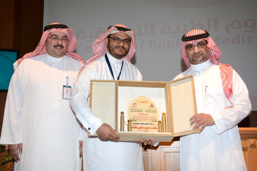 بعد ذلك ألقى وكيل الجامعة للشؤون التعليمية والأكاديمية الدكتور عبد الرحمن الخضيري كلمة راعي الحفل نيابة عن مدير الجامعة أبدى فيها سعادته بالإنجازات والفعاليات التي تقيمها كلية العلوم الطبية التطبيقية مما يجعلها كلية متميزة وفريدة على مستوى الجامعة وواحدة من أفضل كليات العلوم الطبية على مستوى المملكة مشيراً إلى الدعم الكبير الذي تلقاه جامعة سلمان بن عبدالعزيز ومثيلاتها من الجامعات السعودية من حكومة خادم الشريفين وولي عهده الأمين - حفظهم الله- كما وجه الدكتور الخضيري شكره للقائمين على هذه الفعالية وفي نهاية الحفل تم تكريم الشركات الراعية للاحتفال.