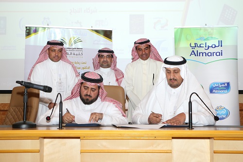 عقب ذلك رحب معالي مدير الجامعة الدكتور عبدالرحمن بن محمد العاصمي في كلمته بالجميع وأكد على أن وجود شراكة فاعلة بين الجامعة وشركات القطاع الخاص لم يعد خيارا بل حاجة ملحة ومسئولية وطنية نحو العمل التكاملي في بناء وتنمية الوطن. كذلك أكد معاليه على أهمية تطوير برامج تدريب صيفي ذات جوده عالية تسهل للطالب اكتساب ما يحتاج من مهارات هندسية ضرورية تساعده بعد التخرج في خوض مسار حياته الوظيفي. عقب ذلك تم توقيع اتفاقية شراكة تدريب لطلاب كلية الهندسة مع شركة المراعي حيث أبدى سعادة الأستاذ على بن ثابت القحطاني مدير التوطين بشركة المراعي سعادته بتوقيع هذه الاتفاقية مع جامعة الأمير سطام بن عبدالعزيز والتي تصب في مصلحة طلاب الجامعة نحو تأهيلهم وتدريبهم في شركة وطنية رائده ذات برنامج تدريب عالي ومتميز.