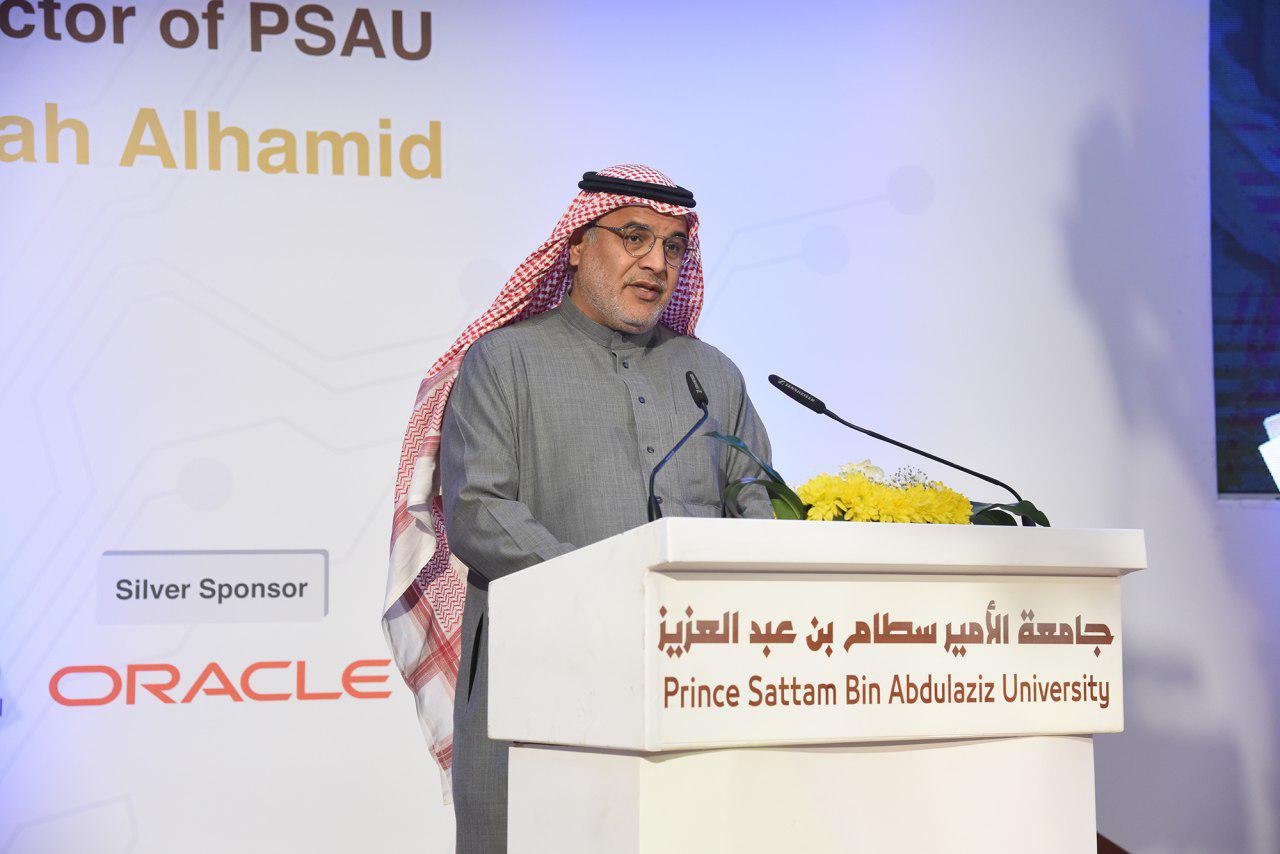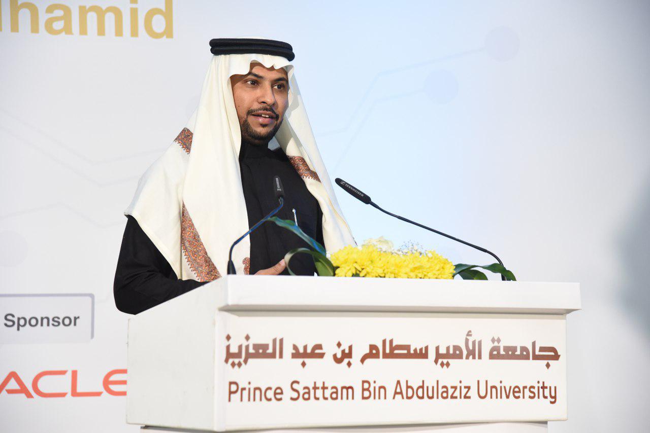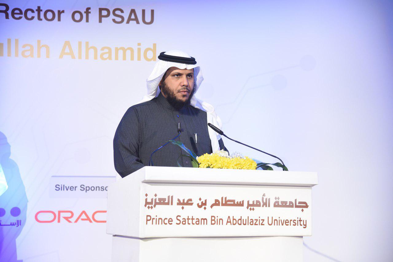 بعد ذلك ألقى سعادة الرئيس التنفيذي لشركة الاستشاريون المحترفون الأستاذ عبد العزيز بن حمد السلوم كلمةً ذكر فيها إن نظام موارد يعد من أهم الأنظمة التي تخدم سير العمل في الجامعة وأنه يحقق توجهات وتطلعات الجامعة بما يتناسب مع رؤية المملكة 2030.