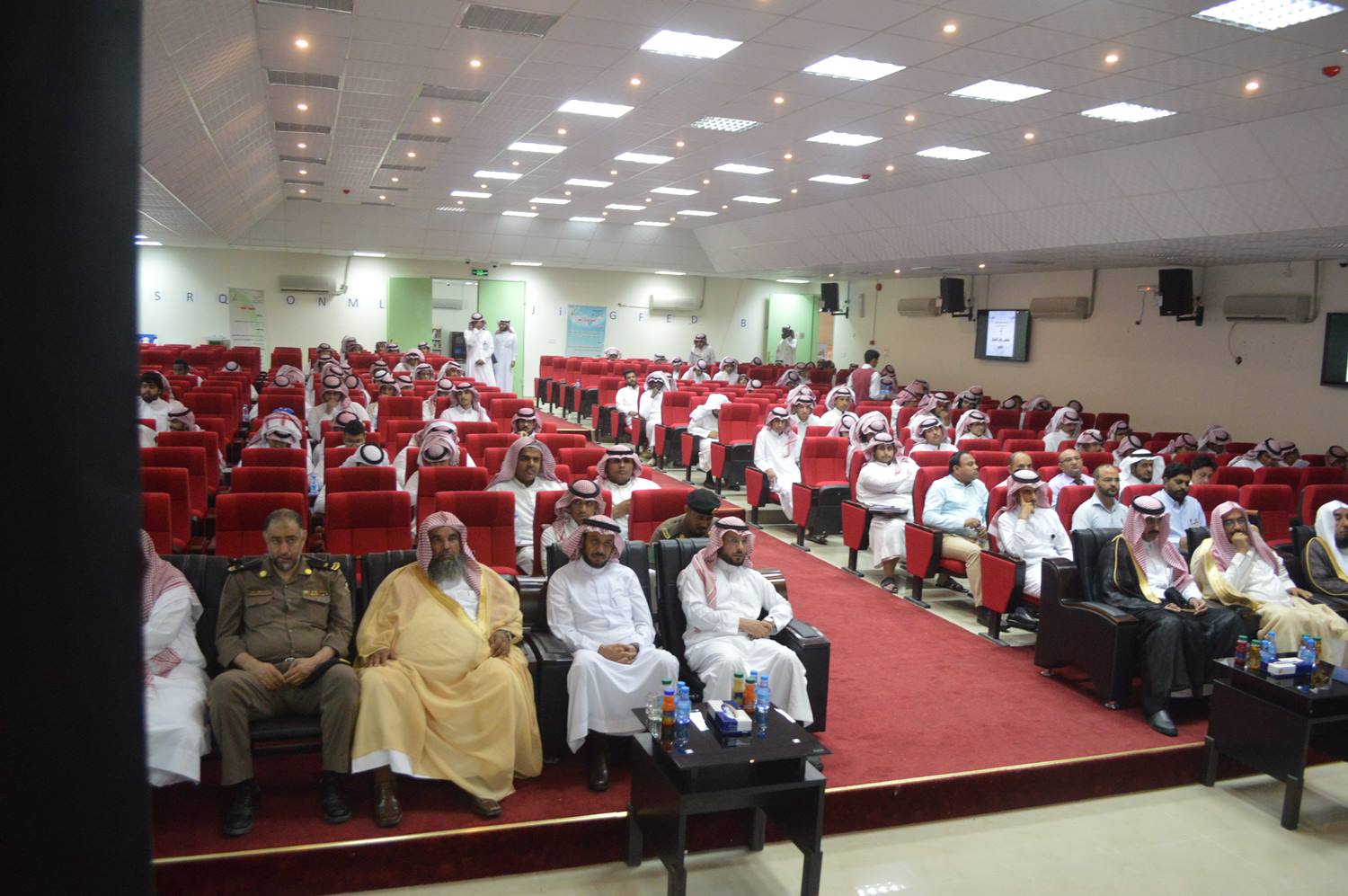 هذا وقد بدأ برنامج الحفل الخطابي بآيات من الذكر الحكيم رتلها الطالب/ حمدي الشاعر. عقب ذلك ألقى عميد الكلية د. خالد العتيبي كلمة رحب فيها بمحافظ حوطة بني تميم، وبمديري الدوائر الحكومية الحاضرين، شاكرًا لهم استجابتهم الكريمة لدعوة الكلية. ثم أوضح الدكتور العتيبي فكرة ملتقى رجال الأعمال، مبينًا أن الهدف منه إفادة طلاب الكلية وأفراد المجتمع المحلي من خبرات رجال الأعمال في القطاع الخاص، إضافة إلى توعية الطلاب بمدى حاجة مؤسسات القطاع الخاص وشركاته لهم وظيفيًّا. كما أشار عميد الكلية في كلمته إلى أن الملتقى يهدف إلى تعريف الزائرين والمشاركين فيه بالتخصصات العلمية في الكلية، والأقسام الأكاديمية فيها. وختم الدكتور خالد العتيبي كلمته بتوجيه الدعوة لأعضاء هيئة التدريس والطلاب بالإفادة من برامج الملتقى.