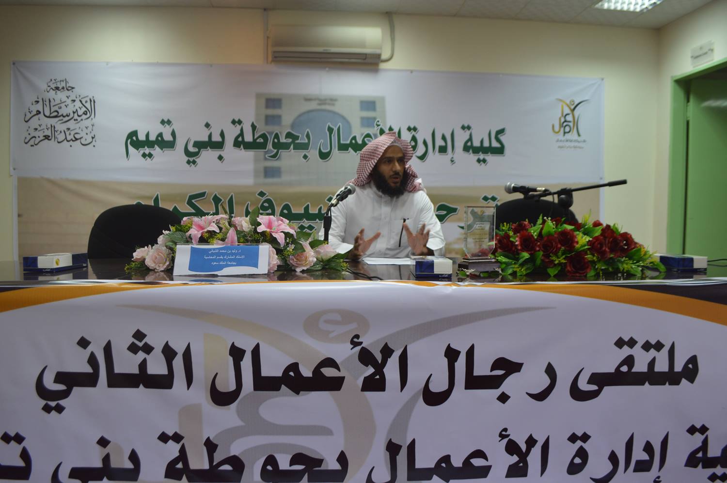 افتتح محافظ حوطة بني تميم الأستاذ محمد بن عامر بن خرصان العجمي ,بحضور عدد من مديري الدوائر الحكومية في المحافظة فعاليات (ملتقى رجال الأعمال الثاني)، الذي نظمته كلية إدارة الأعمال بحوطة بني تميم، وذلك في يوم الاثنين ١٤٣٨/١/٣٠.