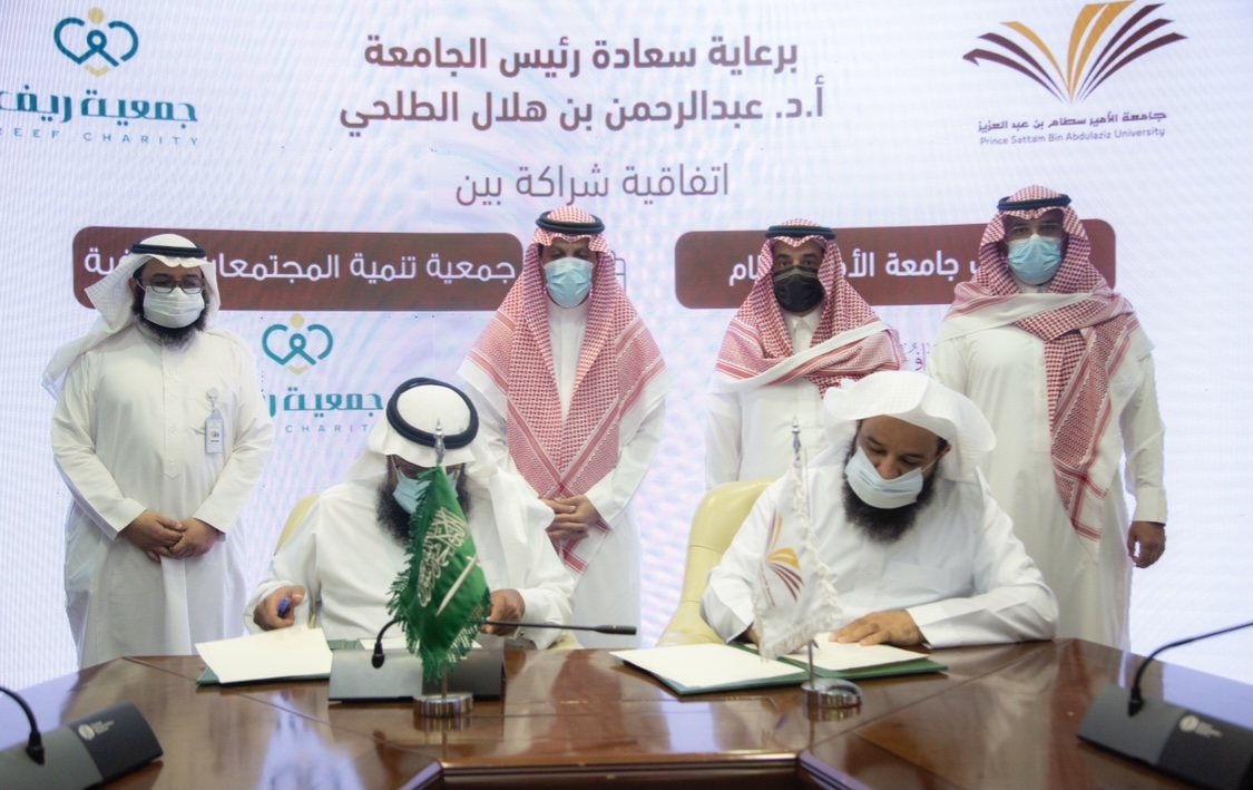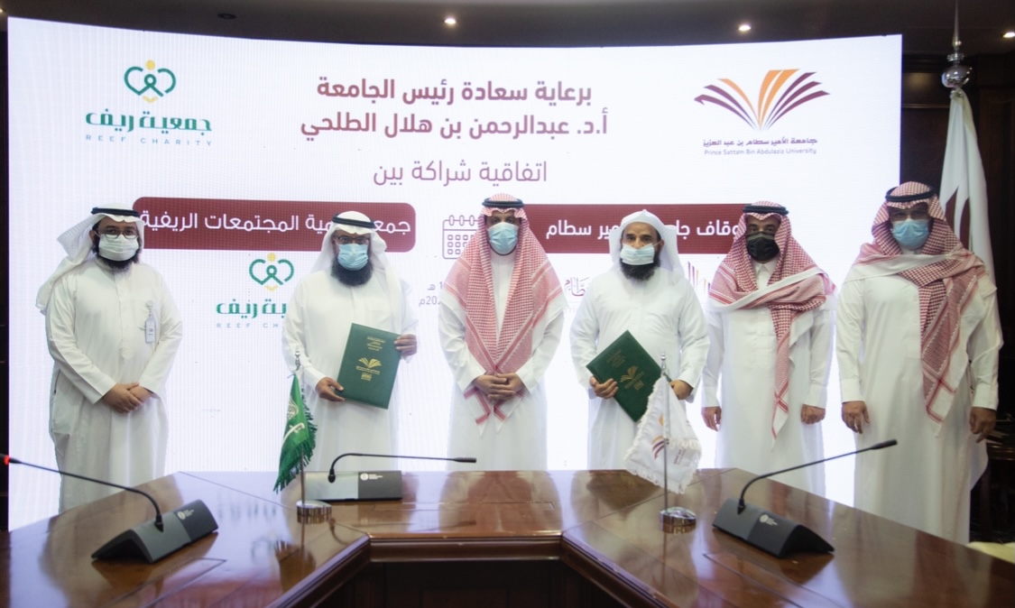 برعاية سعادة رئيس جامعة الأمير سطام بن عبدالعزيز الأستاذ الدكتور عبدالرحمن بن هلال الطلحي وقعت الأمانة العامة لأوقاف الجامعة وجمعية تنمية المجتمعات الريفية بمنطقة الرياض (ريف) اتفاقية شراكة، وقد وقع الاتفاقية عن الجامعة الأمين العام لأوقاف الجامعة الدكتور عبدالرحمن بن عبدالعزيز الجريوي، كما وقع عن الجمعية رئيس مجلس إدارة جمعية تنمية المجتمعات الريفية بمنطقة الرياض (ريف) الأستاذ فهد بن سليمان البكيري، وتأتي هذه الاتفاقية في إطار جهود أوقاف الجامعة للتكامل مع مؤسسات القطاع غير الربحي تحقيقاً لمتطلبات ومستهدفات رؤية ٢٠٣٠، وتتيح الاتفاقية لسد حاجات ومتطلبات الأسر في منطقة الرياض، خصوصاً الجوانب التي تمس حياة المرأة والطفل وكبار السن وأصحاب الهمم ، وتفعيل وإنجاح البرامج والأنشطة التنموية المشتركة لتحقيق أكبر قدر من الاستفادة المنعكسة إيجاباً على المجتمعات الريفية.
