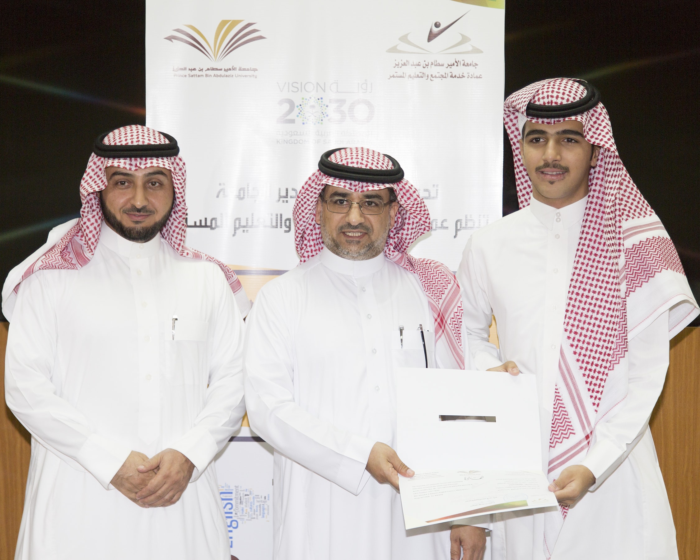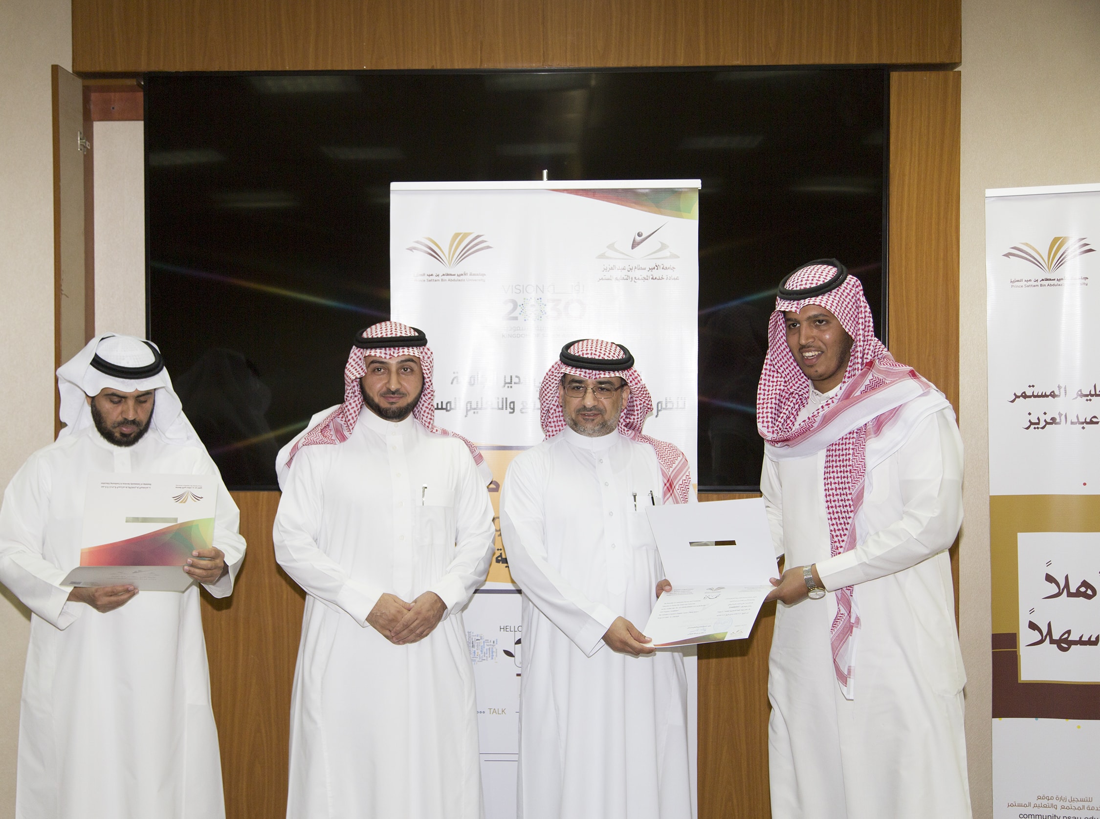 وفي ختام الحفل أثنى سعادة الدكتور إبراهيم الخضيري على ماتقدمة العمادة من برامج مميزة وتفعيلها هدف الجامعة في تقديم ومد جسور التواصل للمجتمع .