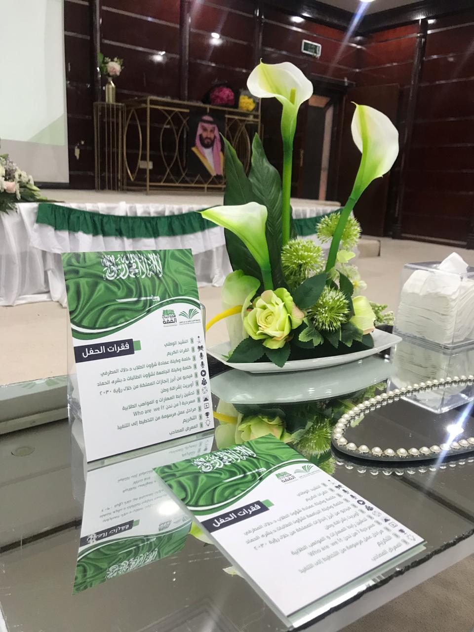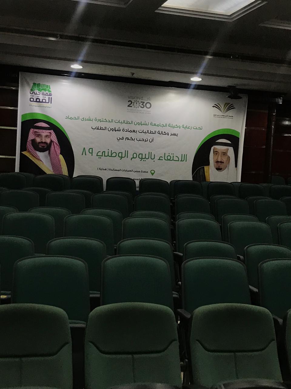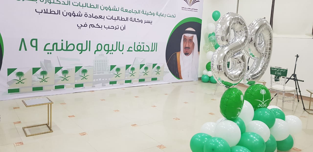 احتفاءً باليوم الوطني الـــ(89) للمملكة أقامت وكالة الطالبات حفلًا متنوّعًا يوم الخميس 27/ 1/ 1441هـ، بعمادة شؤون الطلاب، برعاية الدكتورة بشرى بنت أحمد الحماد، وكيلة الجامعة لشؤون الطالبات.