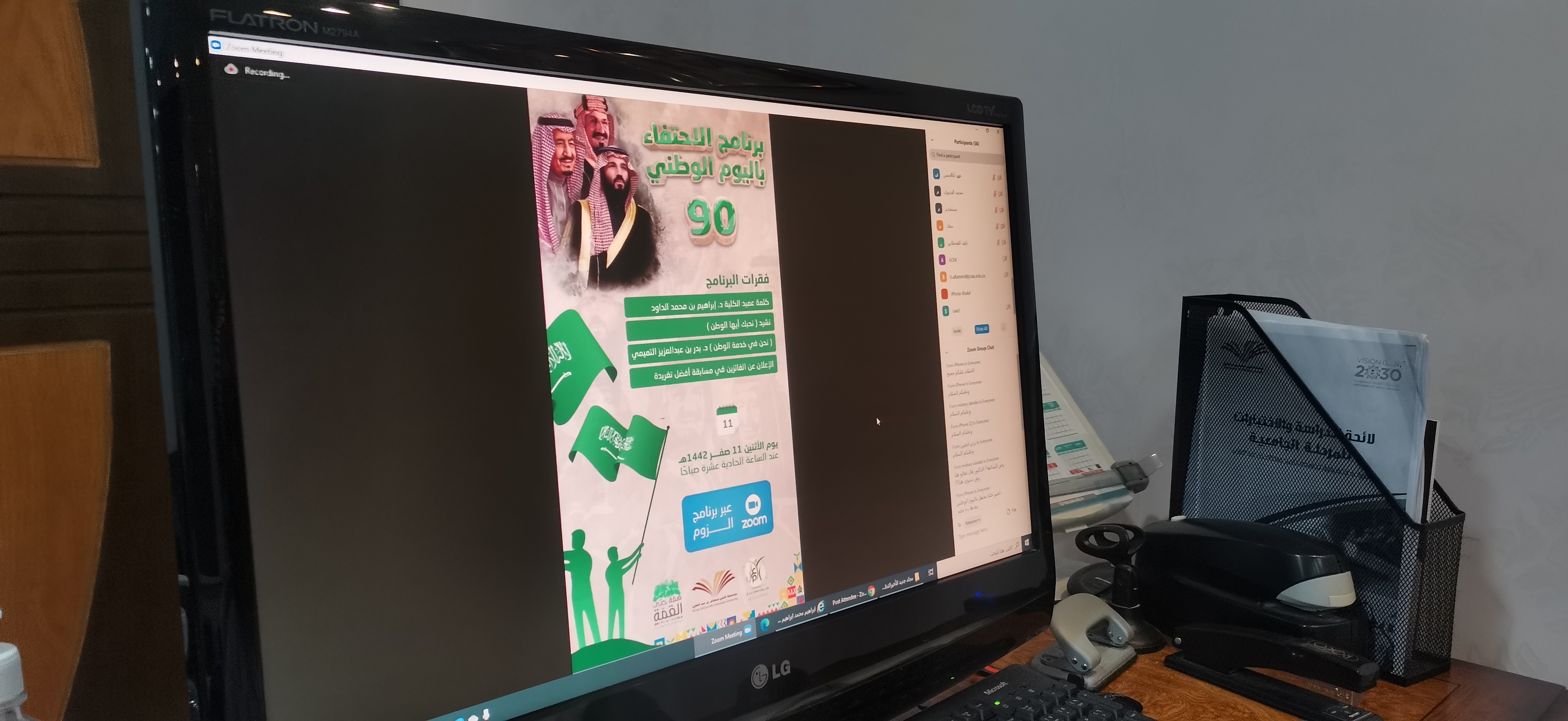 نظمت كلية إدارة الأتمال بحوطة بني تميم ممثلة بوحدة الأنشطة الطلابية برنامجًا افتراضيًّا للاحتفاء باليوم الوطني ٩٠، وذلك في يوم الاثنين ١٤٤٢/٣/١١هـ.