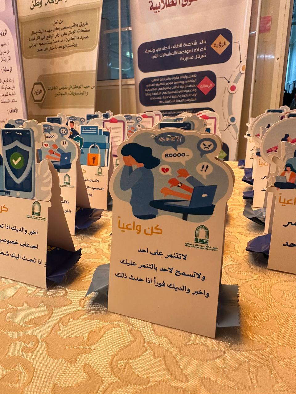 لا يعد الأمن السيبراني بذخا، بل هو حاجة ملحة لكل إنسان في العالم، وبهدف تزويد الطالبات بالمعارف والمهارات اللازمة لحماية المعلومات من الخطر المتزايد للجرائم المعلوماتية، ويعرف الأمن السيبراني على أنه الجهد المبذول لحماية أجهزة الكمبيوتر والشبكات وتطبيقات البرامج والأنظمة المهمة والبيانات من التهديدات الرقمية المحتملة، ومن هذا المنطلق نظمت وحدة العمل الطلابي يوم الأربعاء الموافق17/4/1445ه وبإشراف أ. سارة اليحيى وأ. فاطمة المبخوت برنامجا وركنا في ساحة الكلية بعنوان الأمن السيبراني لتمكين الطالبات من التعرف على ما هو الأمن السيبراني والفرق بينه وبين أمن المعلومات ، حيث وضح فيه تاريخ المملكة في الأمن السيبراني وما هي الهجمات الإلكترونية التي كلفت اقتصاد المملكة.