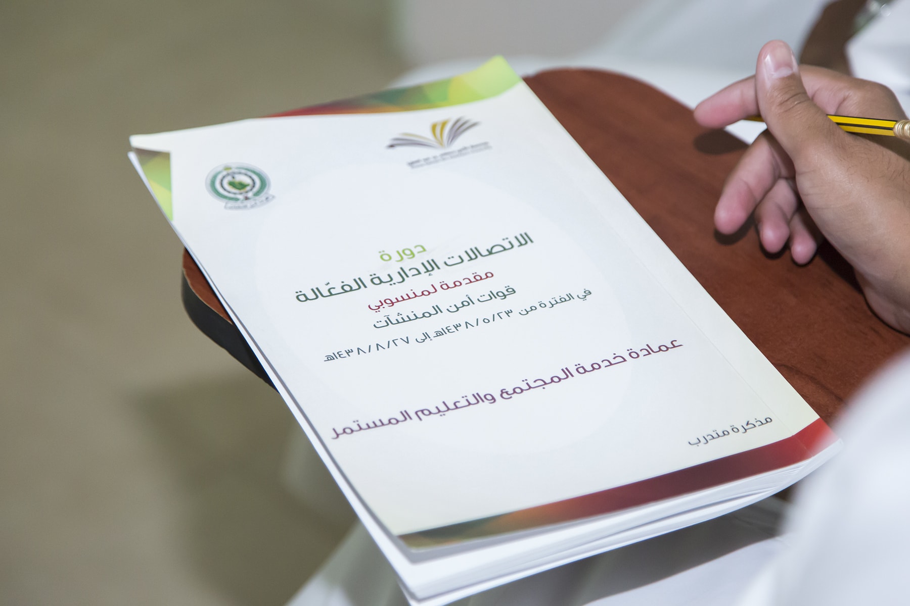 تنظم عمادة خدمة المجتمع و التعليم المستمر بجامعة الأمير سطام بن عبدالعزيز البرنامج التدريبي " الاتصالات الإدارية الفعالة" و المخصص لمنسوبي أمن المنشآت بمحافظة حوطة بني تميم بعد مذكرة تعاون و تدريب بين الجامعة و إدارة التدريب بقطاع الأمن العام بوزارة الداخلية ، والذي يقام الآن في كلية إدارة الأعمال ولمدة ٣ أشهر .