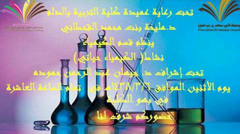 حيث تعد أنشطة قسم الكيمياء من الأنشطة التي تحظي بحضور مكثف من قبل منسوبات الكلية .