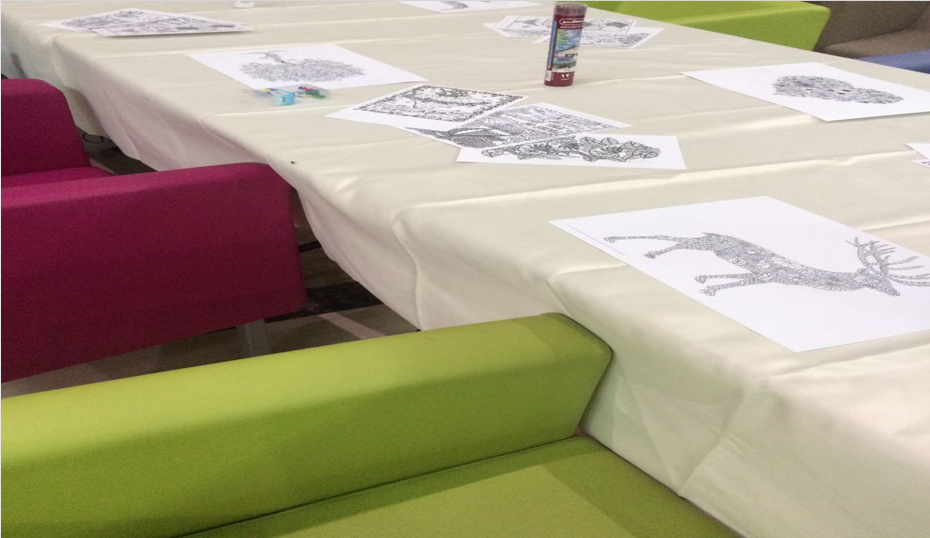 نظم نادي الإبداع بالتعاون مع وحدة العمل الطلابي برنامج عن (العلاج بالفن التشكيلي) تحت إشراف مشرفة النادي أ.نورة الخالد ، يوم الخميس الموافق 16/3/1438هـ من الساعة 9 صباحاً حتى الساعة 12ظهراً بالبهو الداخلي بالكلية.
