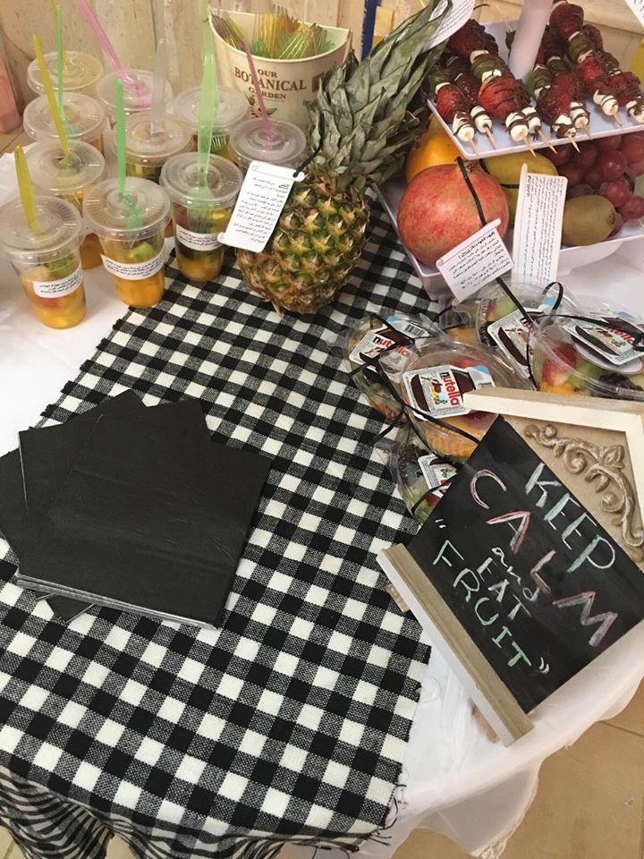كما تم استضافة ممرضات من مستشفى حوطة بني تميم حيث قدمن الفحص المبدئي للضغط والسكر في الدم لعدد من الحضور وتضمن البرنامج العديد من الأركان منها ركن العصائر والمشروبات الساخنة وركن الفاكهة الطازجة المفيدة للجسم .