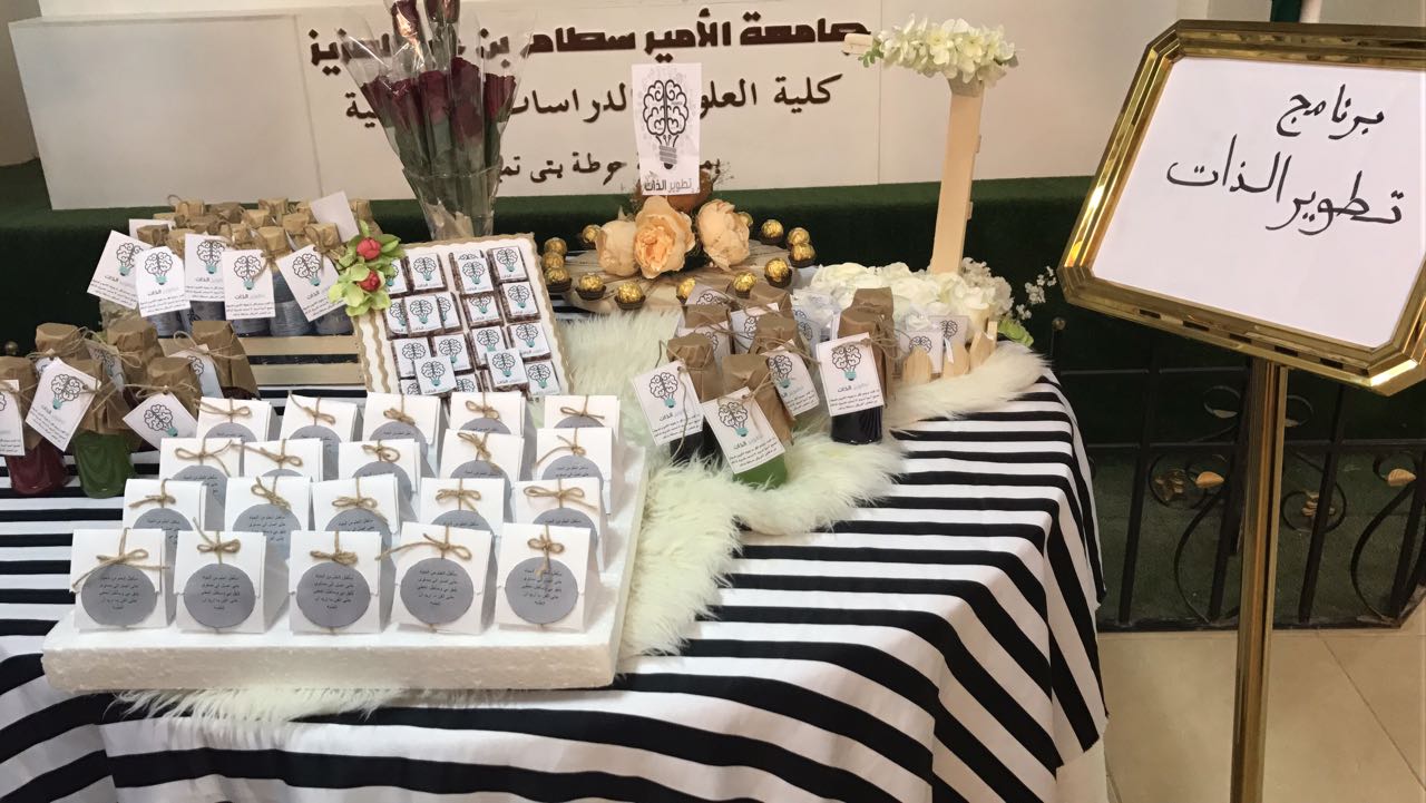 أقام قسم التربية وعلم النفس بكلية العلوم والدراسات الإنسانية بحوطة بني تميم برنامج بعنوان (تطوير الذات ) يوم الثلاثاء 3/ 3 / 1439 هـ . حضر البرنامج سعادة عميده الكلية الدكتورة حصة سعود الهزاني و وكيلاتها وعدد كبير من أعضاء هيئة التدريس والطالبات. يهدف البرنامج إلى تطوير الفرد لذاته وإلى تطوير جوانبه المختلفة الجسمية والنفسية والعقلية والاجتماعية وتضمن البرنامج عرض تقديمي وركن خارجي يحوي عبارات وتوزيعات تحث ع تطوير الذات وتنمية الشخصية وقد نال استحسان الجميع .