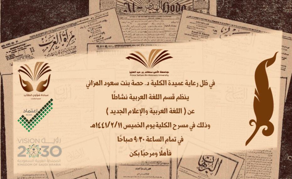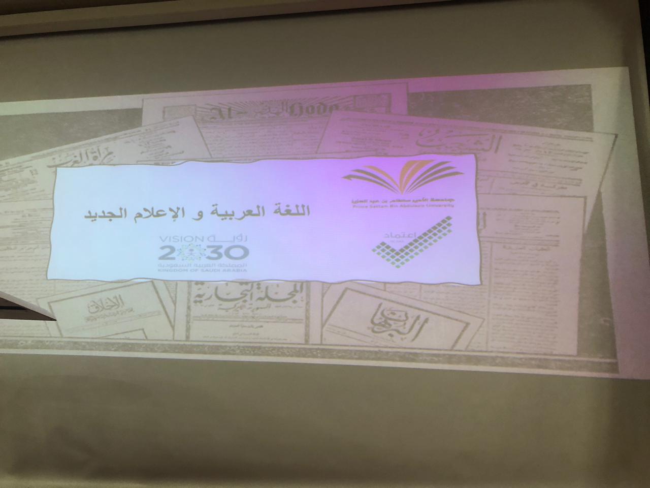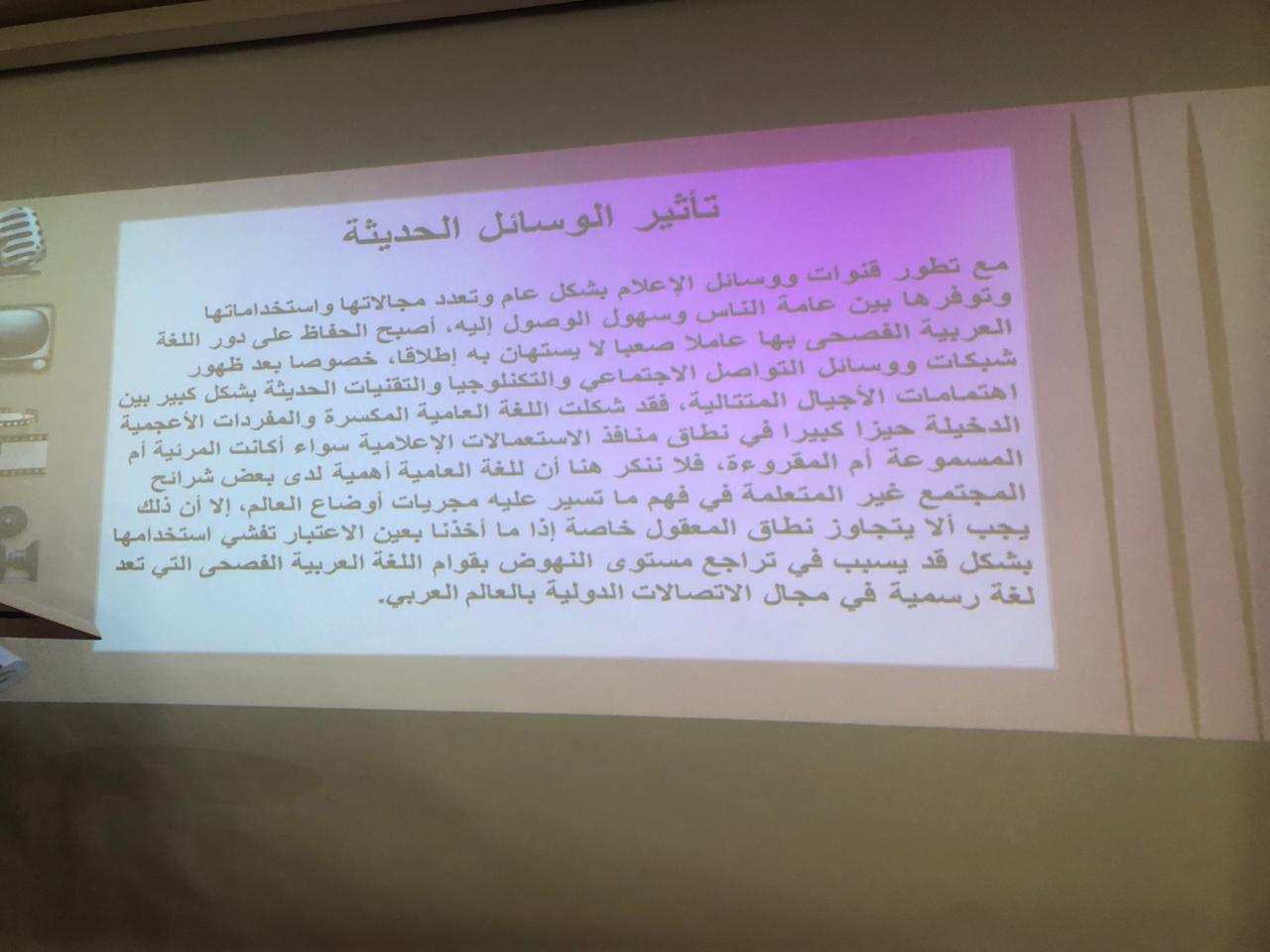 بات كل شخص في هذا العصر إعلامي منفرد، من هذا المنطلق وبرعاية عميدة كلية العلوم والدراسات الإنسانية بحوطة بني تميم د. حصة بنت سعود الهزاني أقام قسم اللغة العربية برنامج ( اللغة العربية والإعلام الجديد) يوم الخميس ١٤٤١/٢/١١هـ في مسرح الكلية. سلّط البرنامج الضوء على بيان علاقة اللغة العربية بالإعلام الجديد، وأهمية الالتزام باللغة الفصحى في تعاملنا مع برامج الإعلام المتعددة، كما تناول الأخطاء الشائعة التي تؤثر على اللغة العربية، وأثر طغيان اللغة العامية في تفشي اللحن والضعف في اللغة في كثير من البرامج والمواد الإعلامية. وتضمن البرنامج مسابقة لقياس مستوى الحاضرات بفهم اللغة العربية من حيث معانيها ومفرداتها، وفي نهاية البرنامج ذُكرت بعض الاقتراحات التي تساهم في جعل اللغة العربية رافداً من روافد النهضة العربية. ولقي البرنامج تفاعلا من جميع منسوبات الكلية.