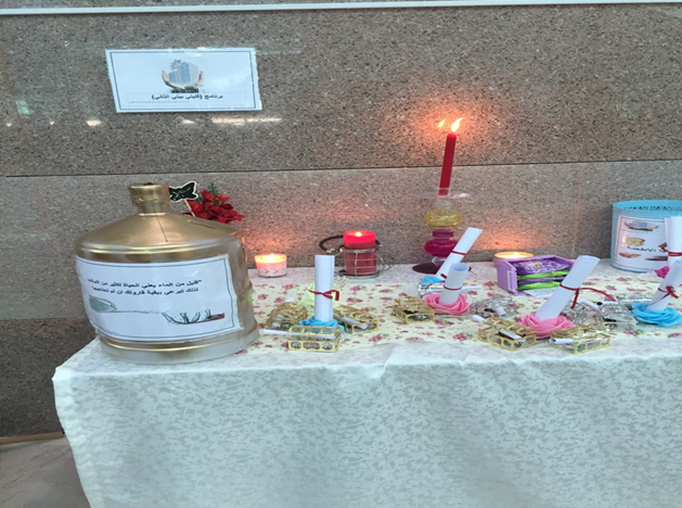 ضمن برنامج أسبوع الإرشاد الأكاديمي نظمت منسقة الإرشاد الأكاديمي بقسم العلوم التربوية أ.حسناء العتيبي وبالتعاون مع المرشدات الأكاديميات بالقسم أ. مها الطعيس ،أ. لينا المزيد ، أ. عائدة السلمان ، برنامج توعوياً بعنوان " كليتي بيتي الثاني" يوم الثلاثاء الموافق 17/1/1438هـ الساعة التاسعة صباحاً في البهو الداخلي بالكلية .