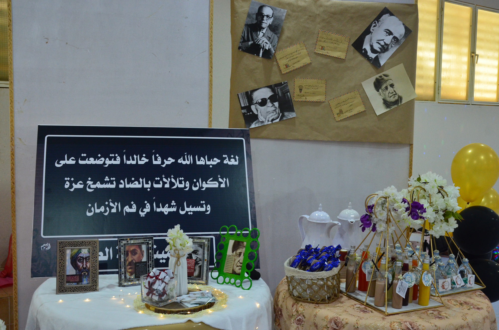 نظم قسم اللغة العربية بكلية العلوم والدراسات الإنسانية بالأفلاج ( شطر الطالبات ) بالتعاون مع وحدة الأنشطة الطلابية اليوم الأحد 1440/3/17 هـ الساعة التاسعة صباحاً في قاعة الأنشطة برنامج لغة الضاد تحت شعار ( لغتي هويتي ) بُدء البرنامج بمقدمة عن اللغة العربية و أصولها و عبارات تختص بها , بعدها أُلقيت قصيدة لأحمد شوقي عن لغة الضاد التي بين فيها اتساع اللغة لكل جديد واستجابتها لكل تطور , كما احتوى البرنامج على أركان تعبر عن اللغة العربية كلغة للقرآن و كذلك كونها واحدة من أسهل اللغات حول العالم .