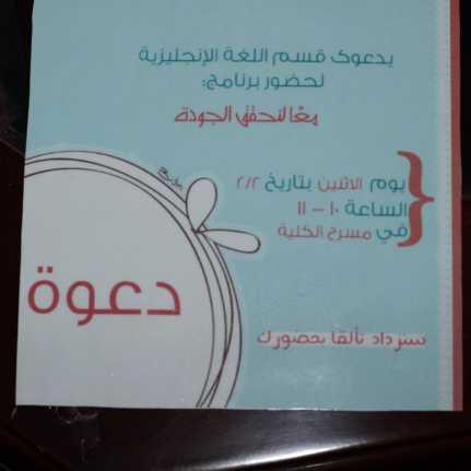 أقام قسم اللغة الإنجليزية بكلية العلوم والدراسات الإنسانية بحوطة بني تميم بتنفيذ برنامجا بعنوان "معاً لنحقق الجودة" تحت اشراف منسقة النشاط الطلابي بقسم اللغة الانجليزية أ. سارة التميمي و يهدف البرنامج إلى نشر ثقافة الجودة و توعية الطالبات بأهمية تقييم العملية التعليمية بكل مصداقية.