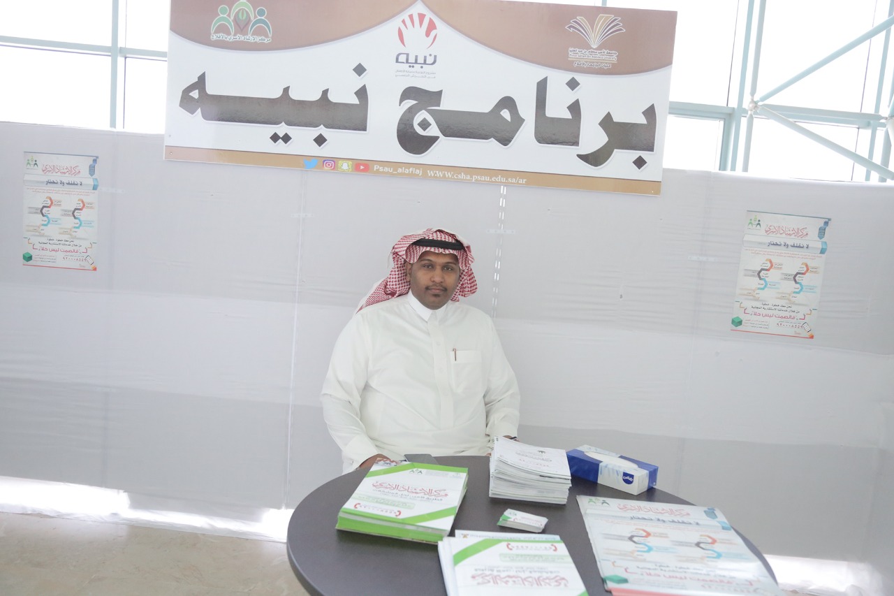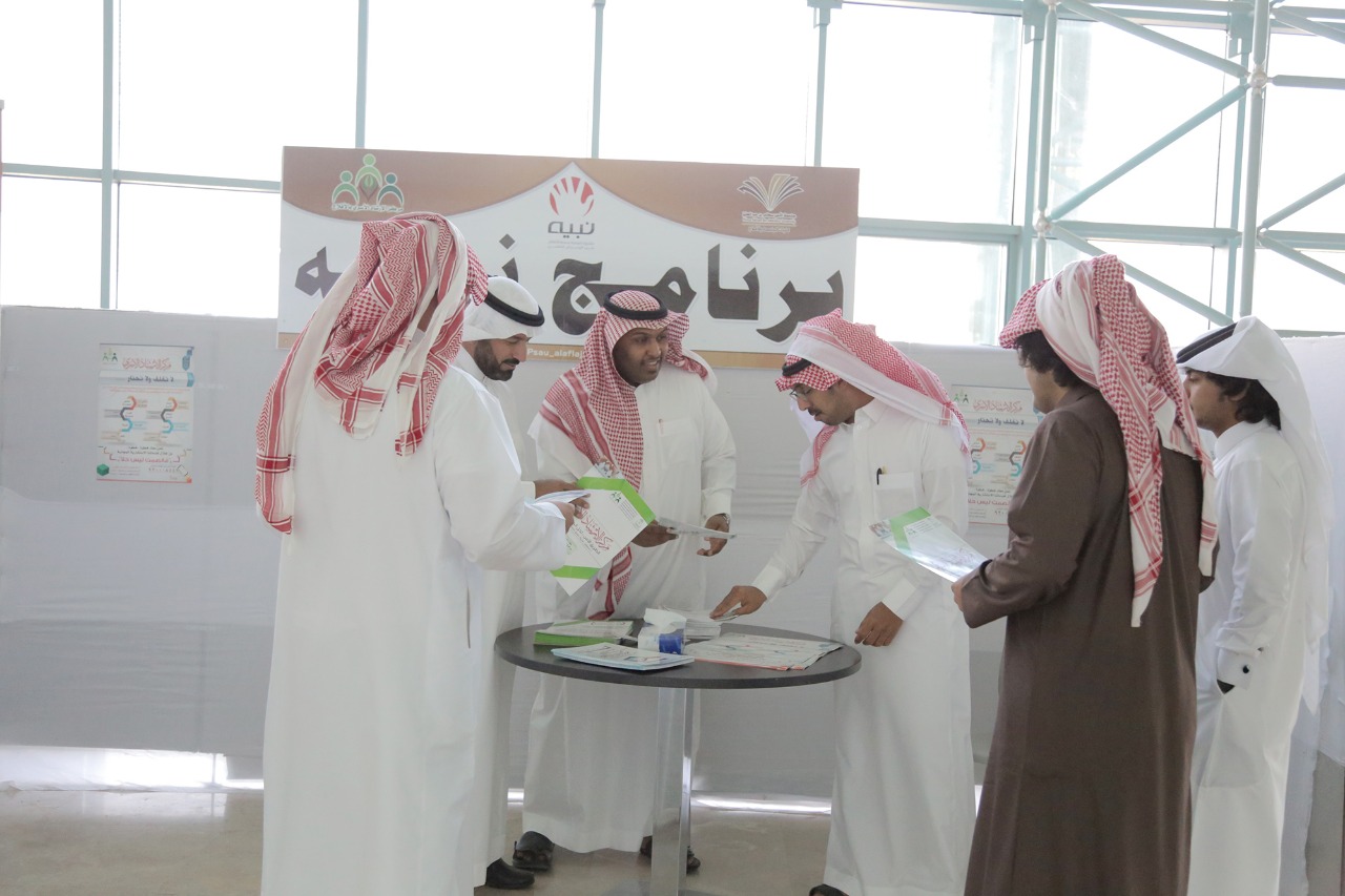 نظم النادي التطوعي بكليات جامعة الأمير سطام بن عبدالعزيز بالأفلاج بالتعاون مع مركز الإرشادي الأسري بلجنة التنمية بالأفلاج أمس الثلاثاء ١٤٤٠/٣/١٩ هـ فعاليات برنامج "نبيه" من خلال ركن أحتوى على منشورات ومطبوعات تعريفية وشرح مفصل عن البرنامج.