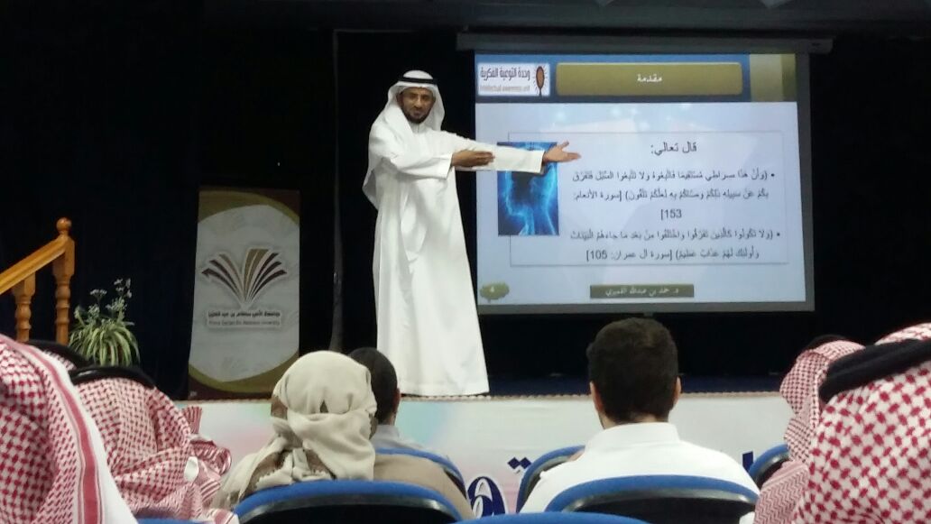 تحت رعاية معالي مدير الجامعة الدكتور عبدالعزيز بن عبدالله الحامد وبالتعاون مع كلية الهندسة بوادي الدواسر نظمت وحدة التوعية الفكرية بالجامعة برنامج تدريبي بعنوان "الأمن الفكري قيم" ضمن مشروع نحو جامعة واعية 2 قدمها الدكتور حمد القميزي ، وذلك بمسرح كلية الهندسة.