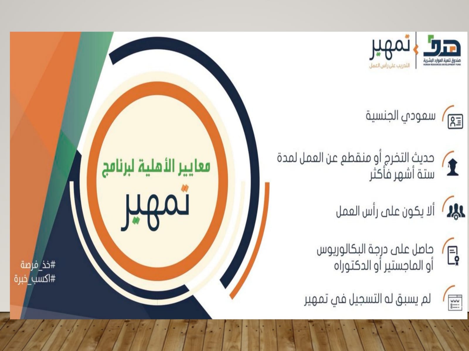 وكان من أهداف البرنامج تعريف الطالبات بمزايا واهداف برنامج تمهير كذلك تدريب الطالبات على كيفية التسجيل بموقع طاقات وحفظ السيرة الذاتية النموذجية كما تم تعريفهن بمعايير الأهلية لبرنامج تمهير ومتطلبات البرنامج للمتقدمين وفي نهاية البرنامج تم تدريب الطالبات عمليًا على بعض النماذج لاكتشاف كيفية التقديم على فرص تمهير التدريبية.