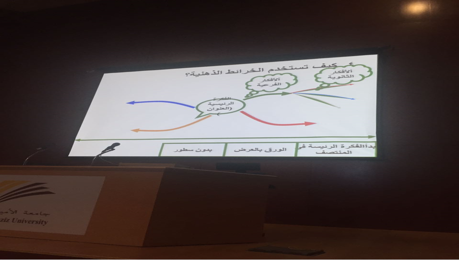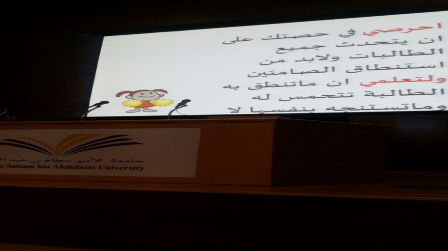وقد تم في يوم الأربعاء 12/5/1438هـ عقد ورشة بعنوان (الطريقة المثلى لتخطيط وتنفيذ الدرس وتقويمة بصورة نموذجية )من إعداد وتقديم د.تهاني الدسيماني وأ.لينا المزيد .