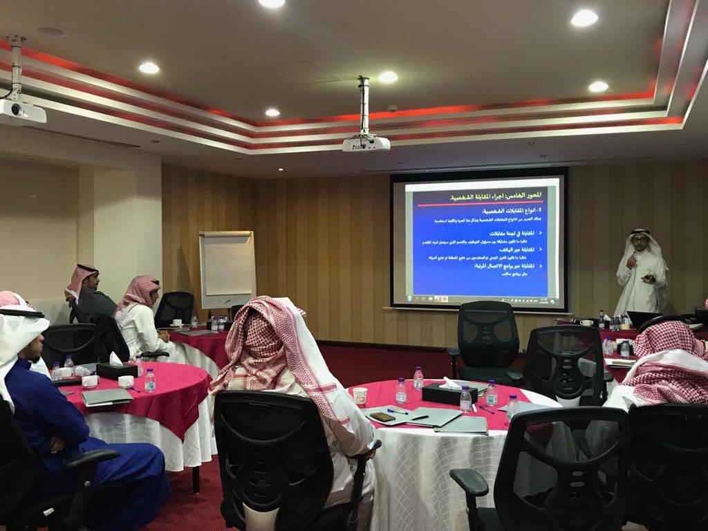نظمت وحدة الأنشطة الطلابية بكلية إدارة الأعمال في حوطة بني تميم بالتعاون مع قسم التوظيف والتدريب في مصرف الراجحي برنامجًا تدريبيًّا، يوم الأربعاء ١٤٣٩/٥/٢٨هـ، من الساعة العاشرة والنصف صباحًا حتى الساعة الرابعة عصرًا، في فندق كروان الفهد بالرياض.