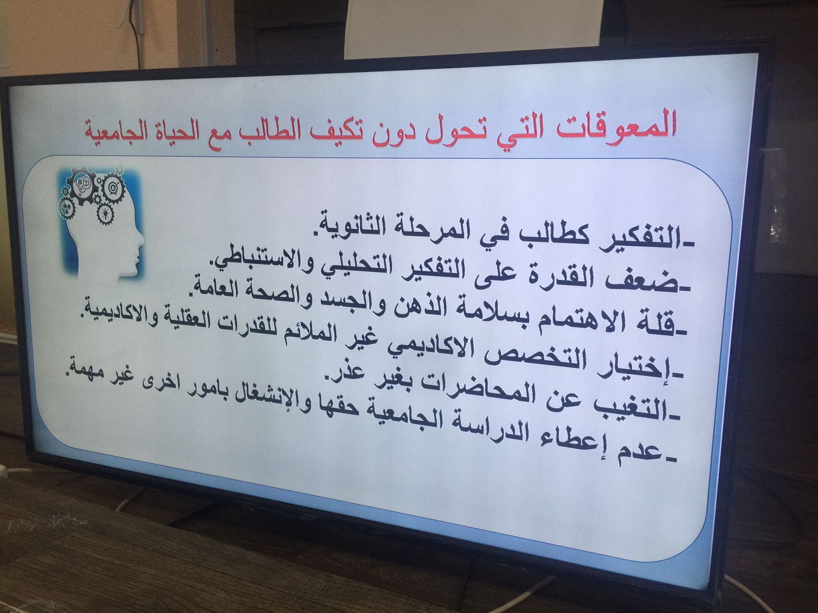 وتناول البرنامج التي قدمه مشرف وحدة الإرشاد والتوجيه في الكلية الأستاذ عبد الرؤوف الحراحشة في تعريف الإحباط وسوء التكيف، والتعثر الأكاديمي، وأسباب الإحباط، وأنواع التكيف، ومهارات التكيف مع الحياة الجامعية وأثر الإحباط وسوء التكيف على التقدم الأكاديمي للطالب.