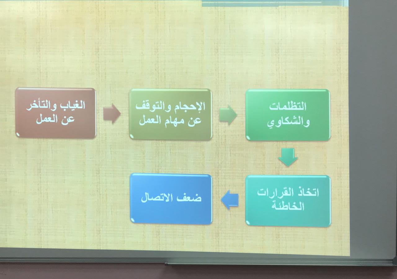 كذلك تم تناول الأسباب التنظيمية و الإشرافية ودور الموظف والمدير والمشرف في ضغط العمل وكيفية تجنب تلك الضغوطات.