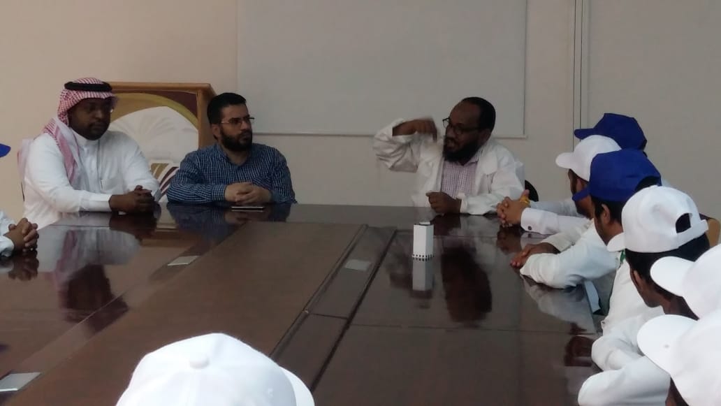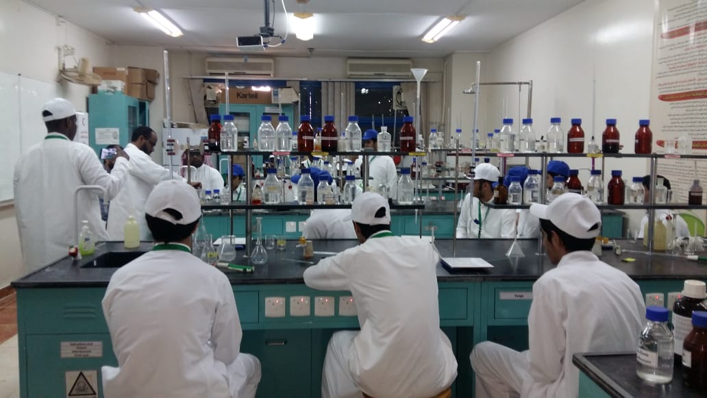 القسم الأول : استقبلنا فيه طلاب المدرسة بمعية رائد النشاط الطلابي الأستاذ / محمد فاضل الفاضل ، وبعد تبادل الحفاوه والترحيب أجتمع بهم في قاعة الاجتماعات ليكونوا مع الدكتور/زاكي الدين عوض،(فريق عمل التجارب المخبرية) الّذي ألقى في بداية الأمر محاضرة تمهيدية ومشوقة عن الكيمياء ودورها في الحياة ومجالات العمل التي تتماشى مع تخصص خريج الكيمياء .